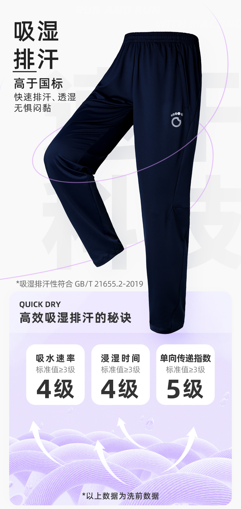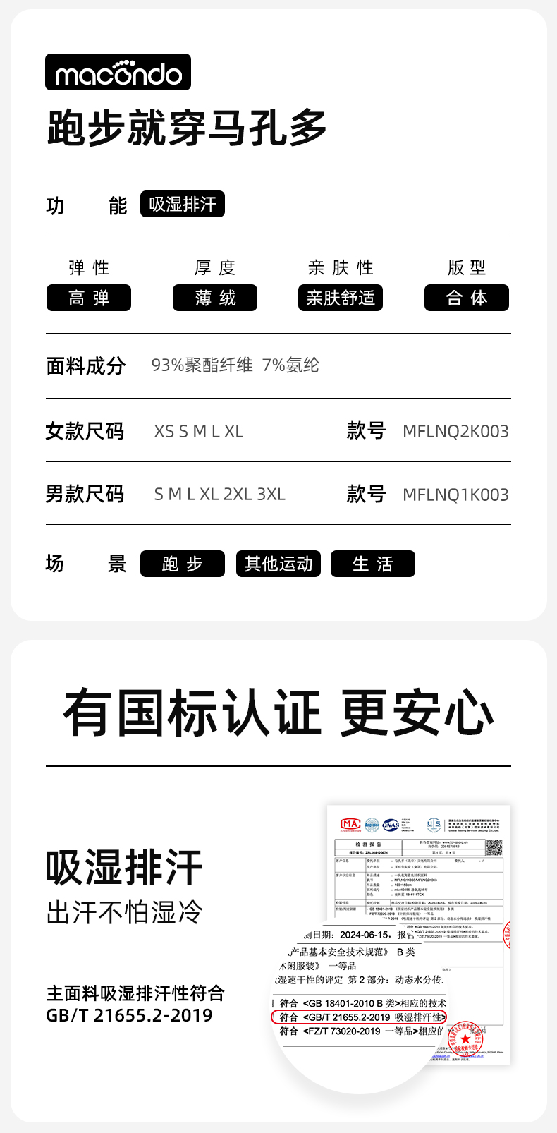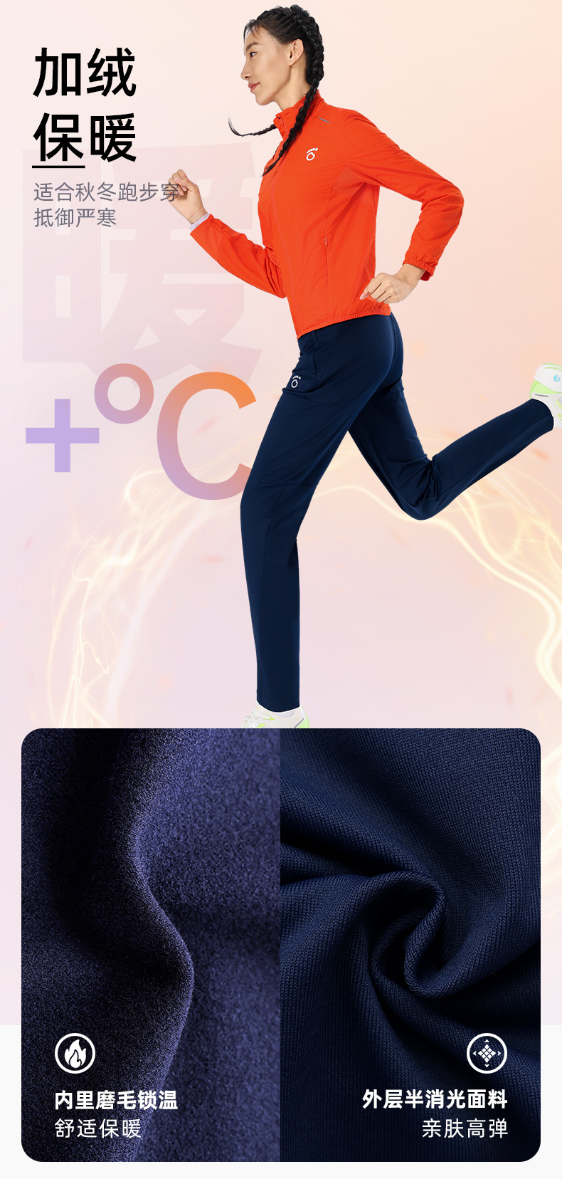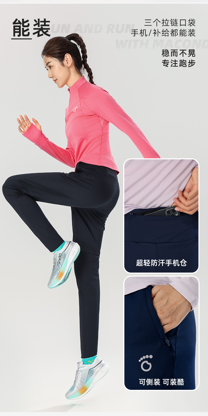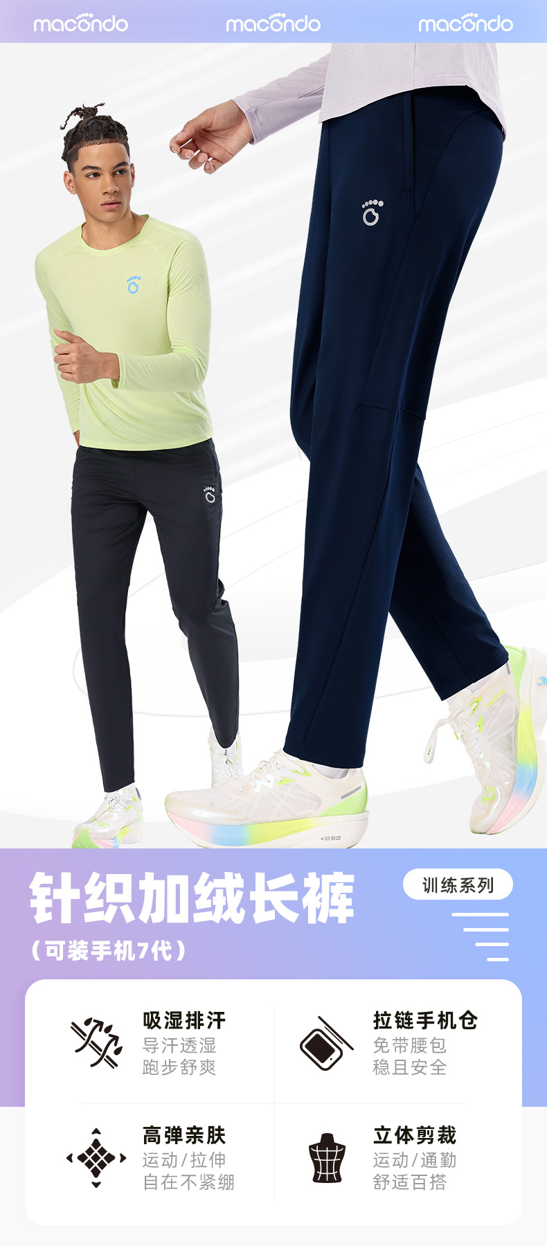 春秋马孔多男女针织加绒长裤 磨毛保暖 吸湿速干 锥形脚口显瘦 防汗手机仓 两侧拉链兜 腰部抽绳