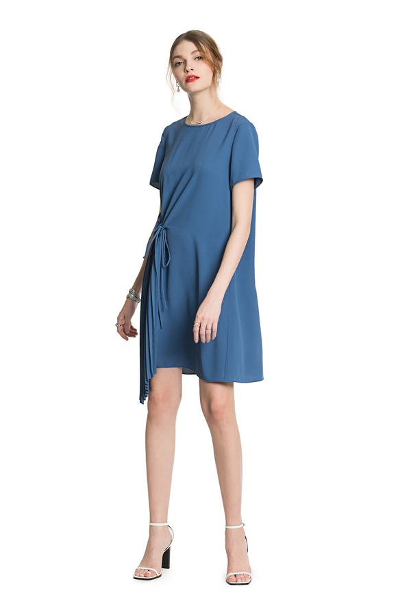SUMMER & SAGE 蓝色不规则系带连衣裙 3437