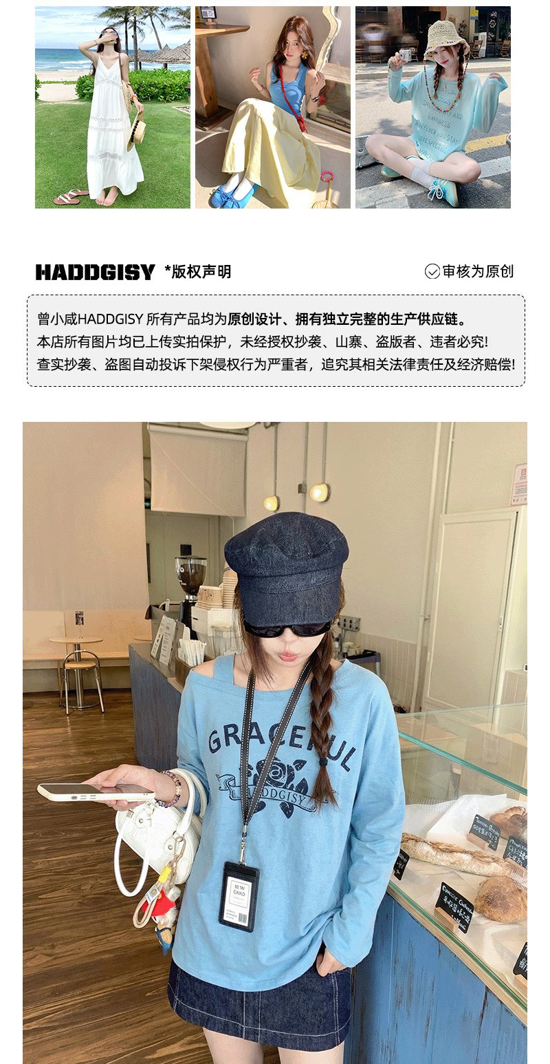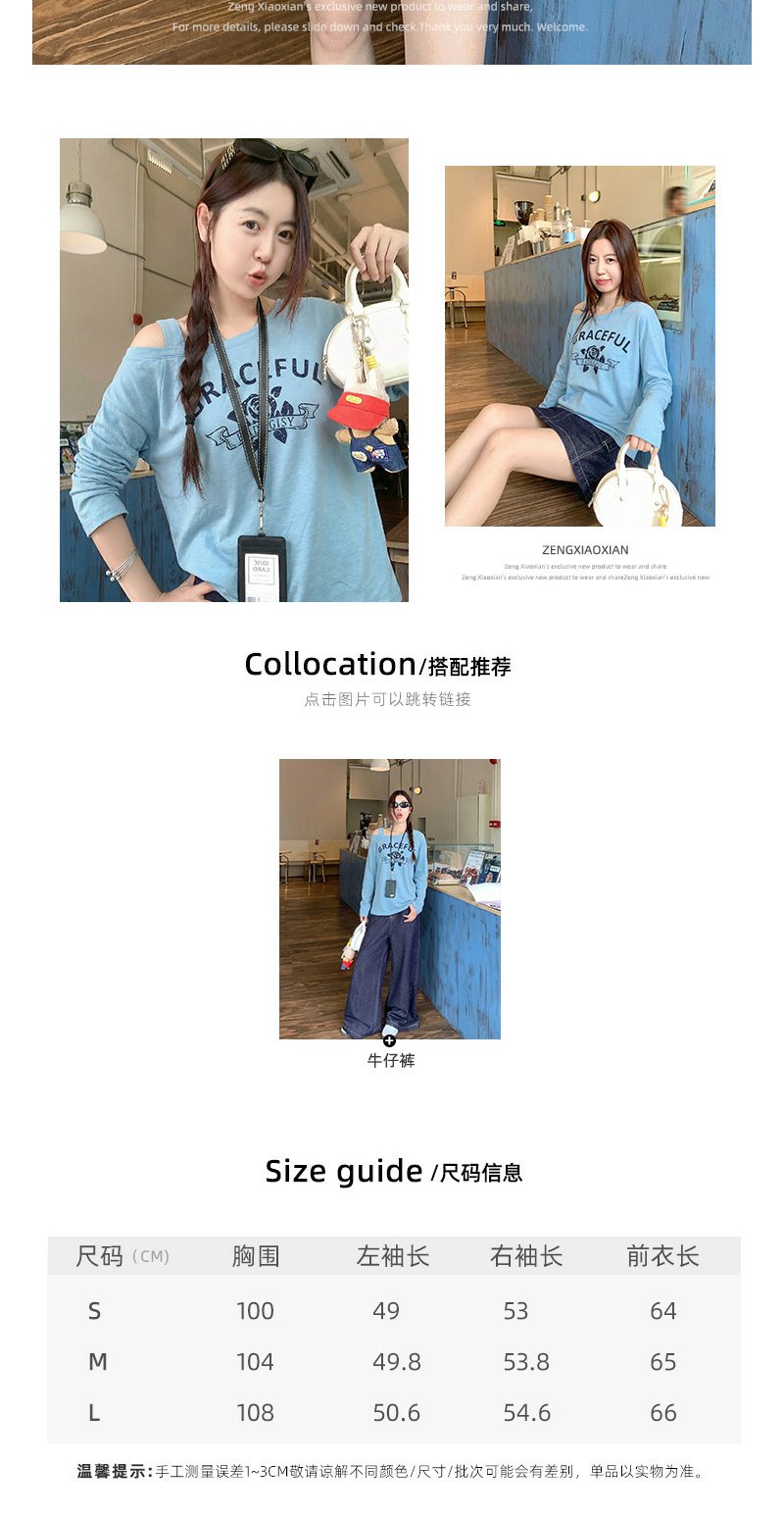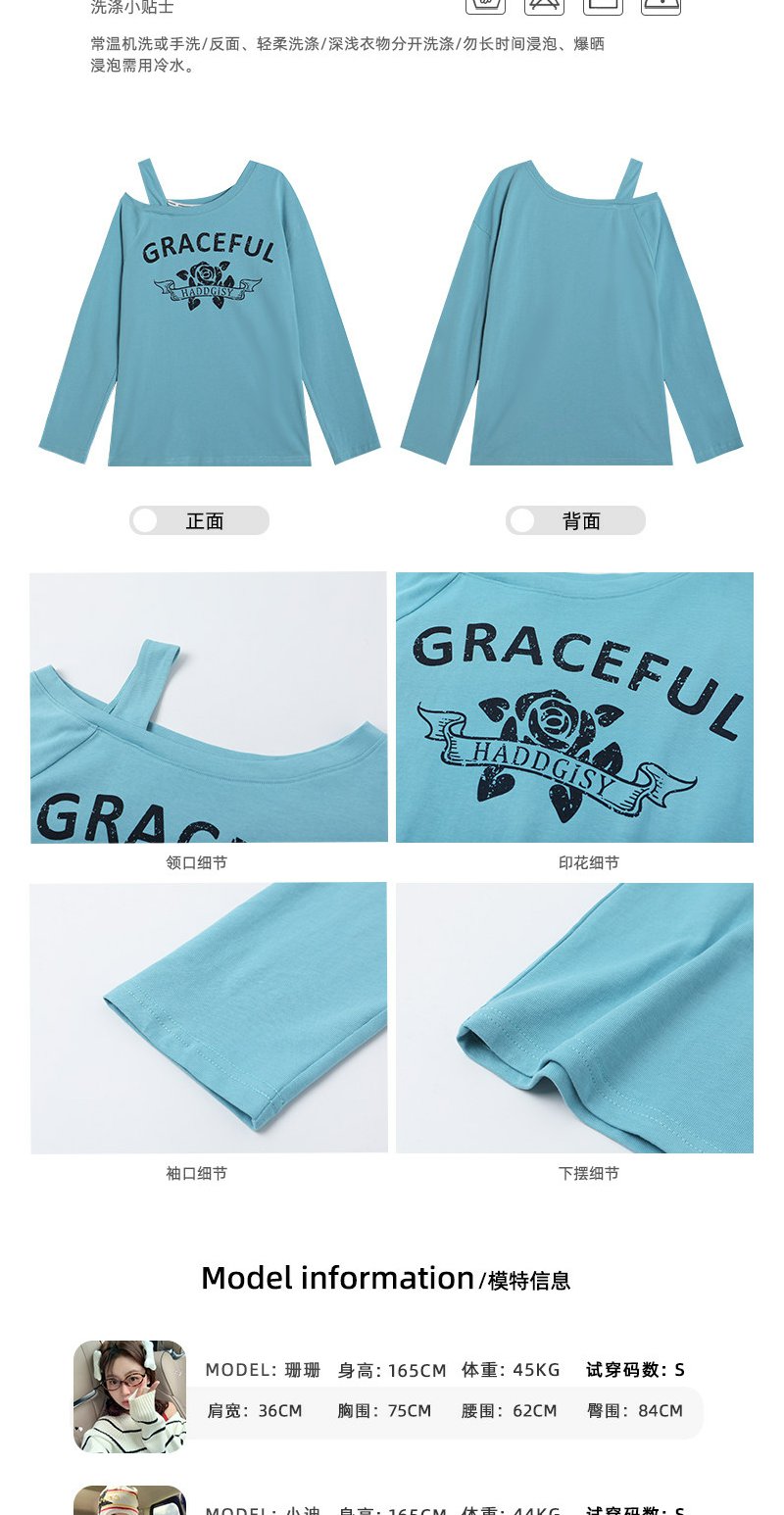 <曾小咸推荐>4.5现货秒杀 !微信超特价!韩系印花斜肩t恤长袖 日常149.99 立减80 秒杀69.99!!