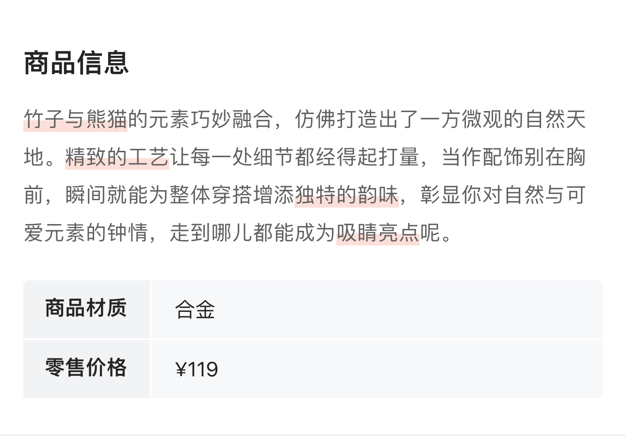 ESTACIA 中国风竹子可爱熊猫配饰胸针 21752