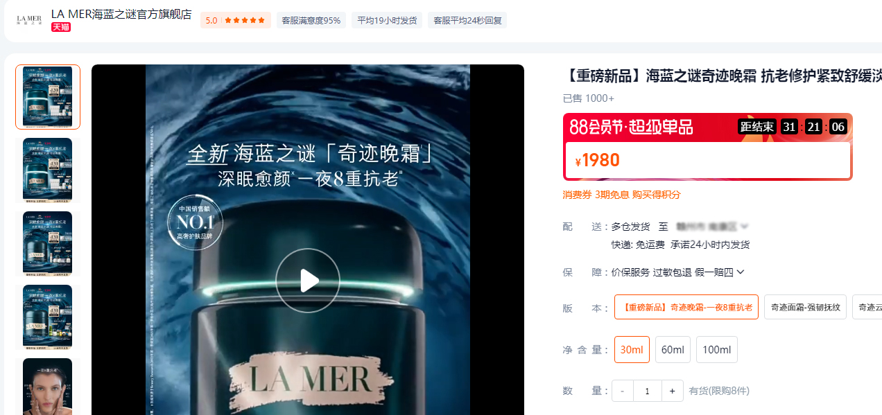 【8.11王炸割肉价】 海蓝之谜奇迹晚霜7ml