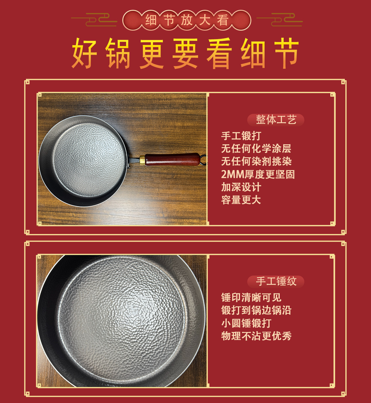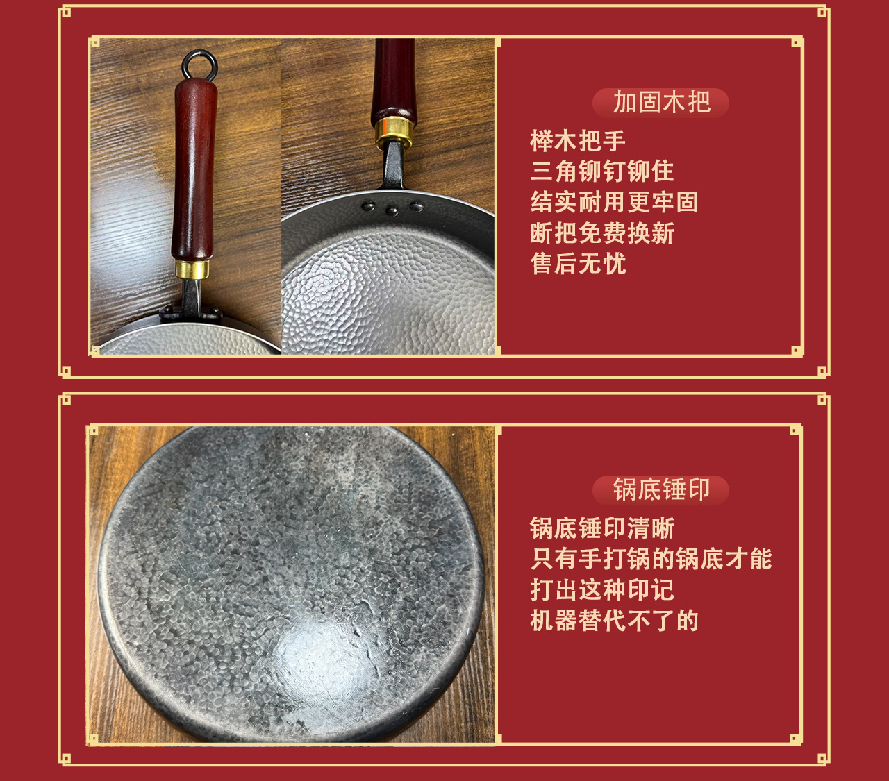 【章丘炭烧鱼鳞平底煎锅】炭烧鱼鳞平底煎锅手工铁锅无涂层平底煎锅家用平锅煎蛋不粘锅熟铁