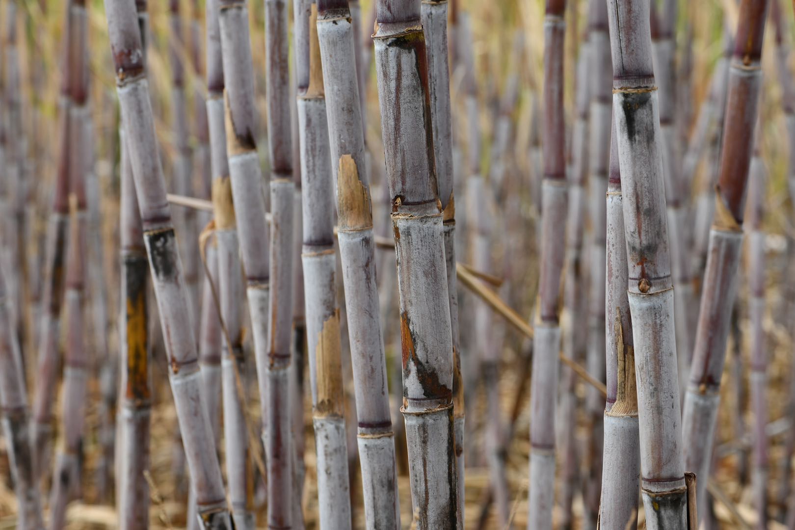 新鲜砍下的甘蔗码放整齐,去头去尾