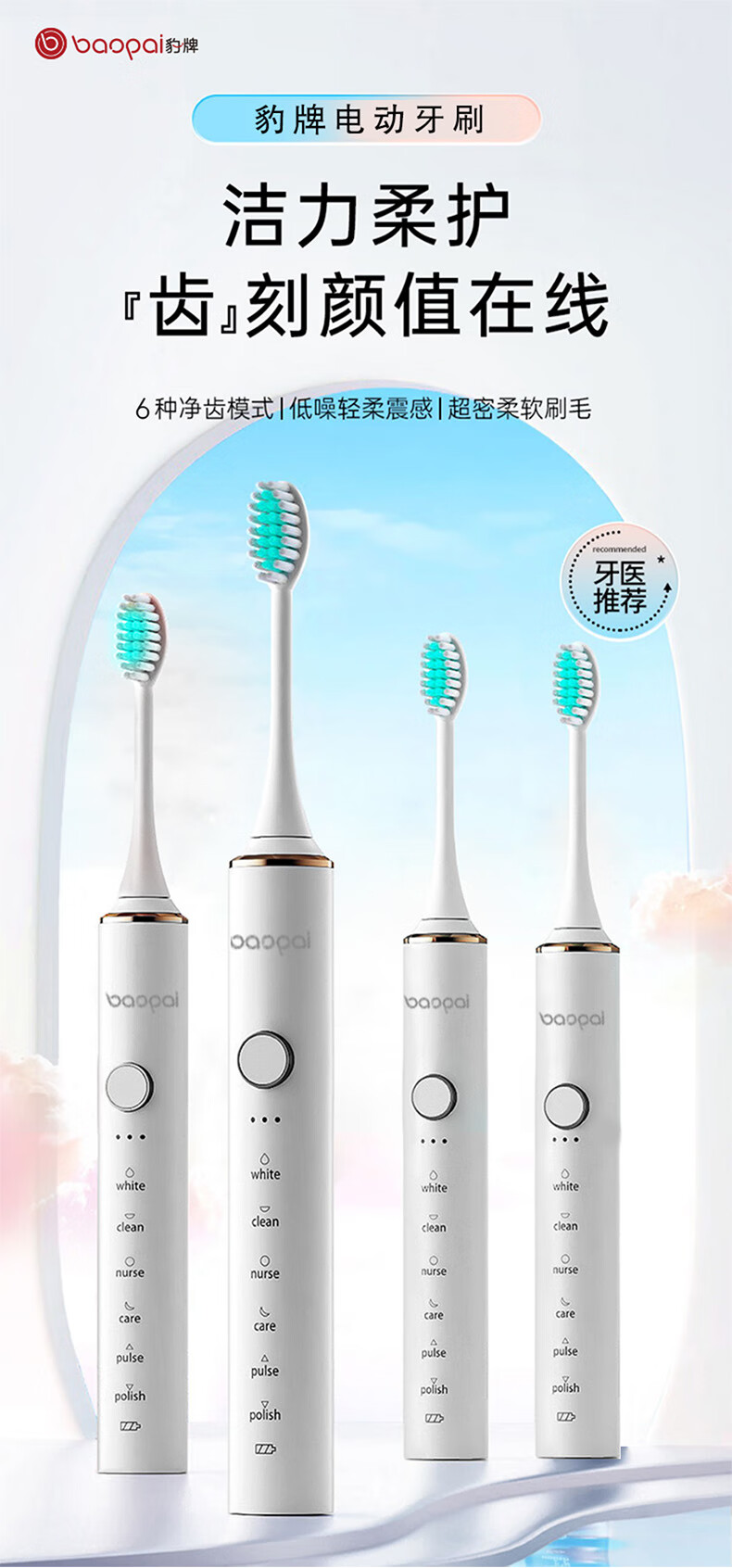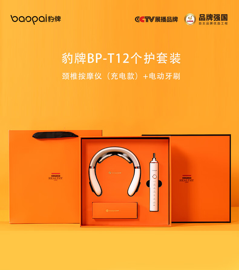 豹牌BP-T12个护套装(颈椎按摩仪+电动牙刷)配4个刷头 按摩仪低频脉冲