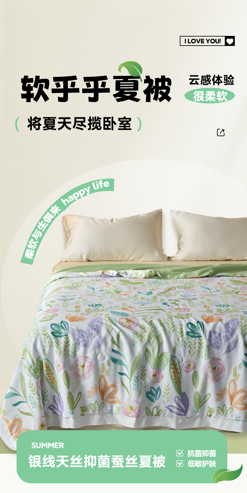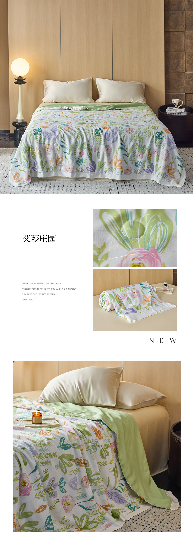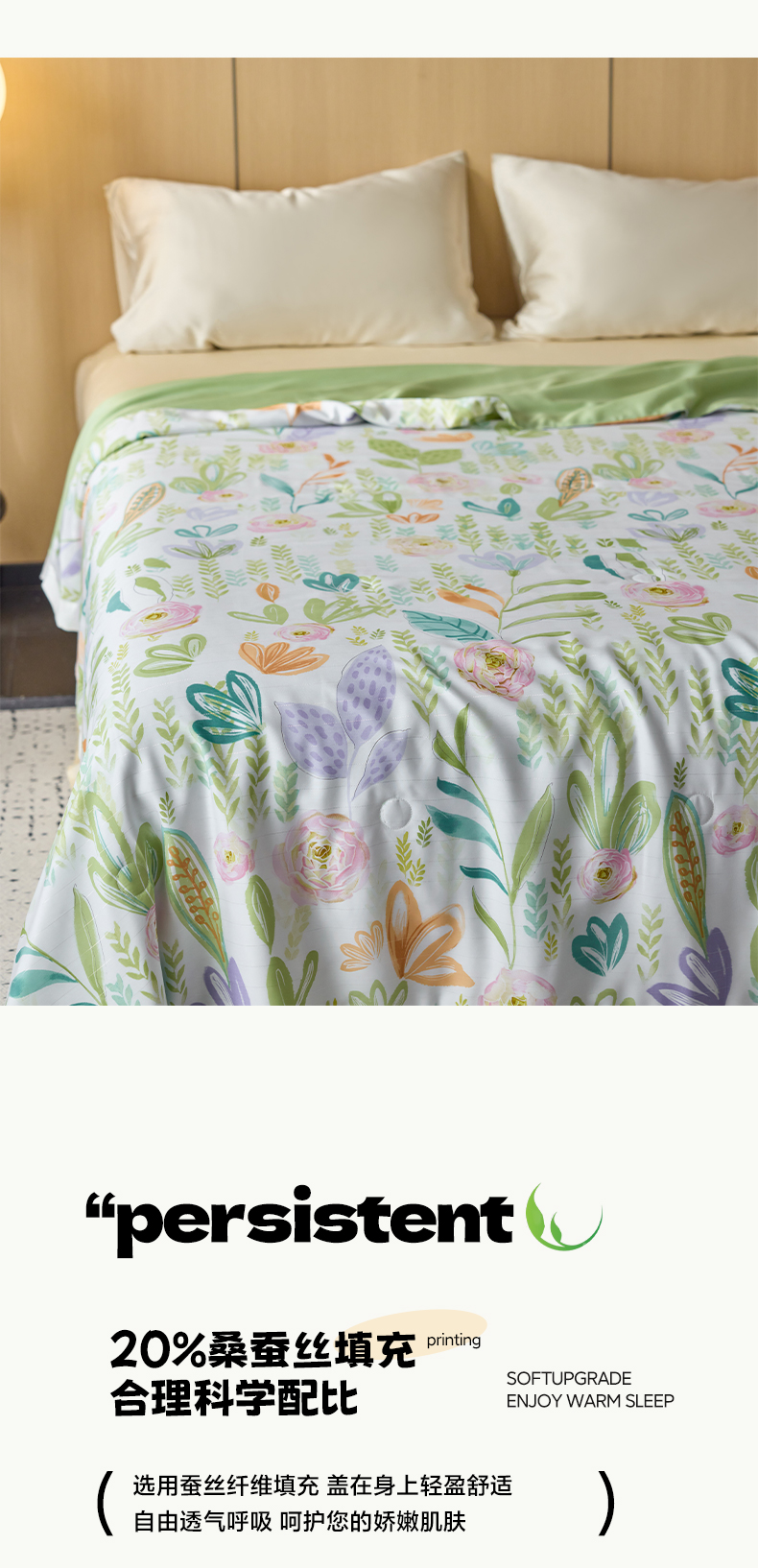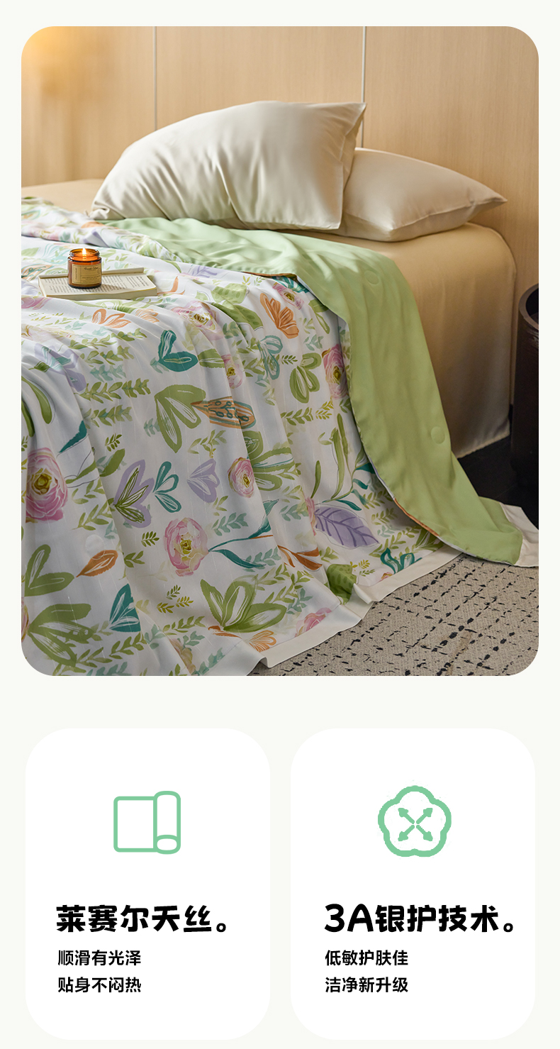 【清仓特惠】自然醒银线天丝抑菌蚕丝夏被夏季天丝蚕蛹蛋白被银丝抗菌可水洗夏凉被空调被田园印花薄被子LFS