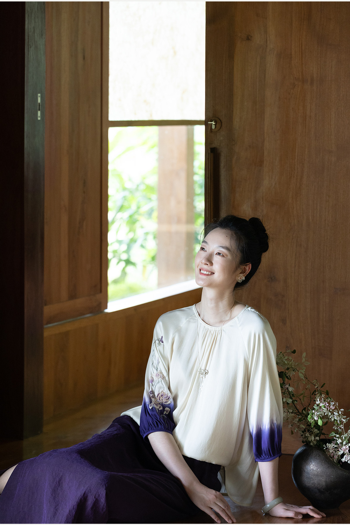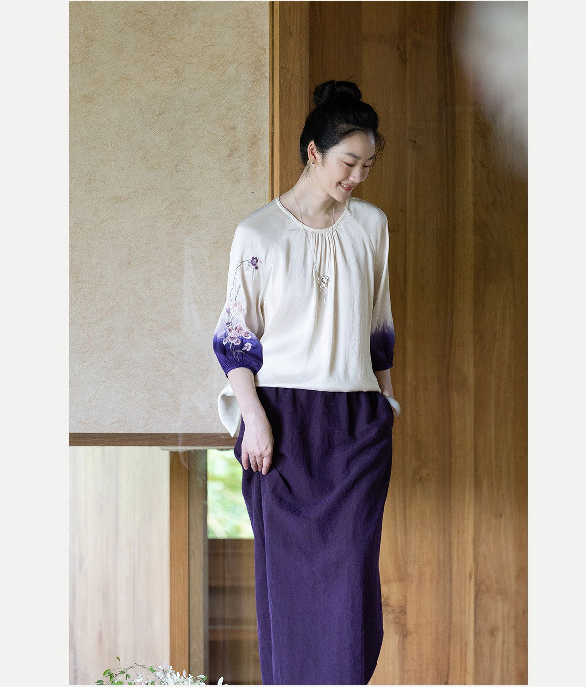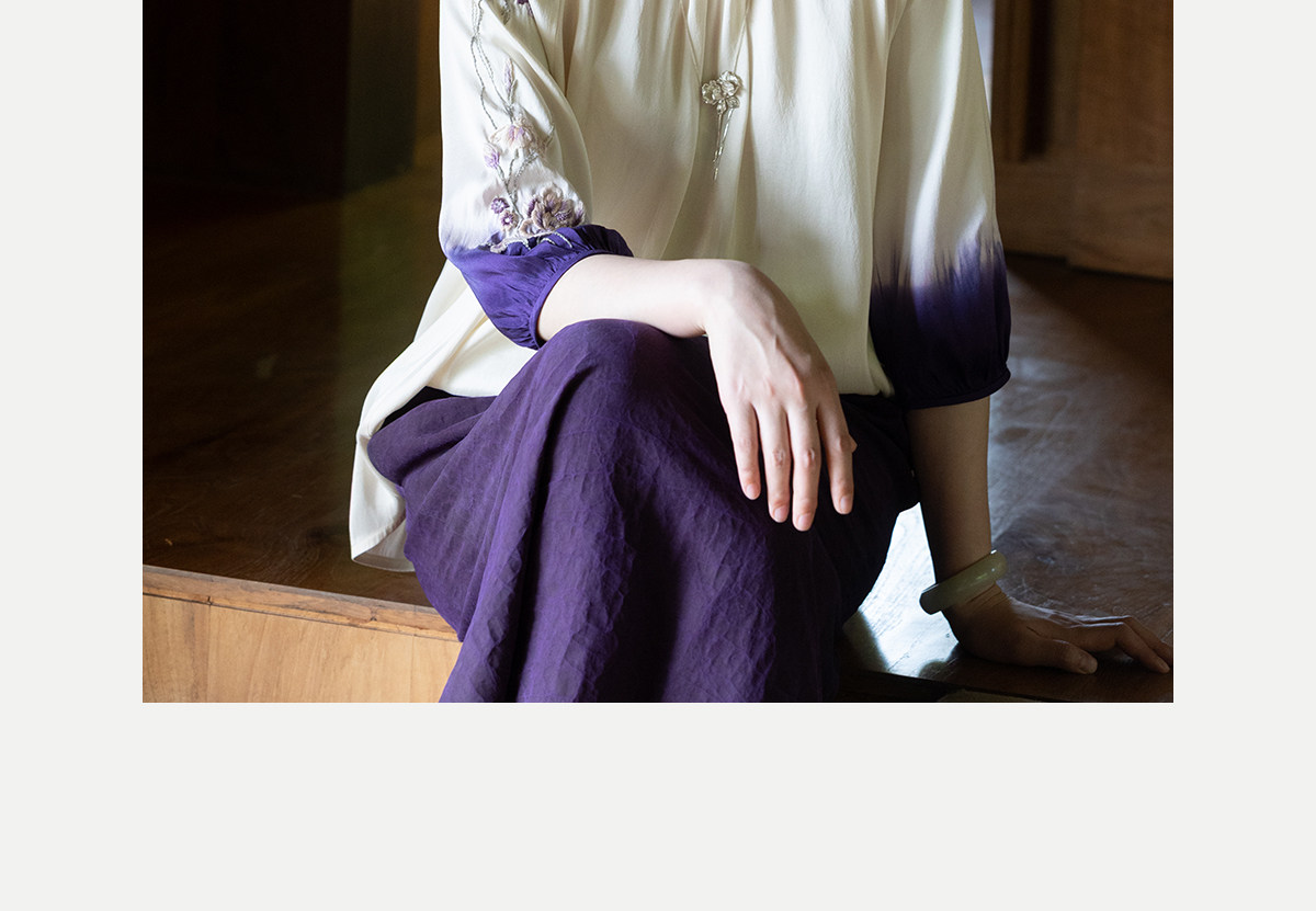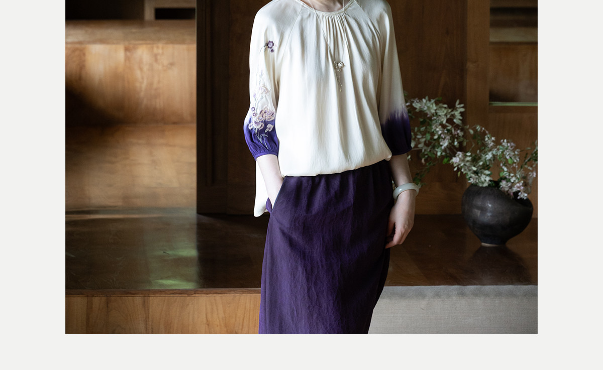 牧衣游原创22姆米重磅吊染手工刺绣桑蚕丝衬衫古朴禅意上衣 茶露