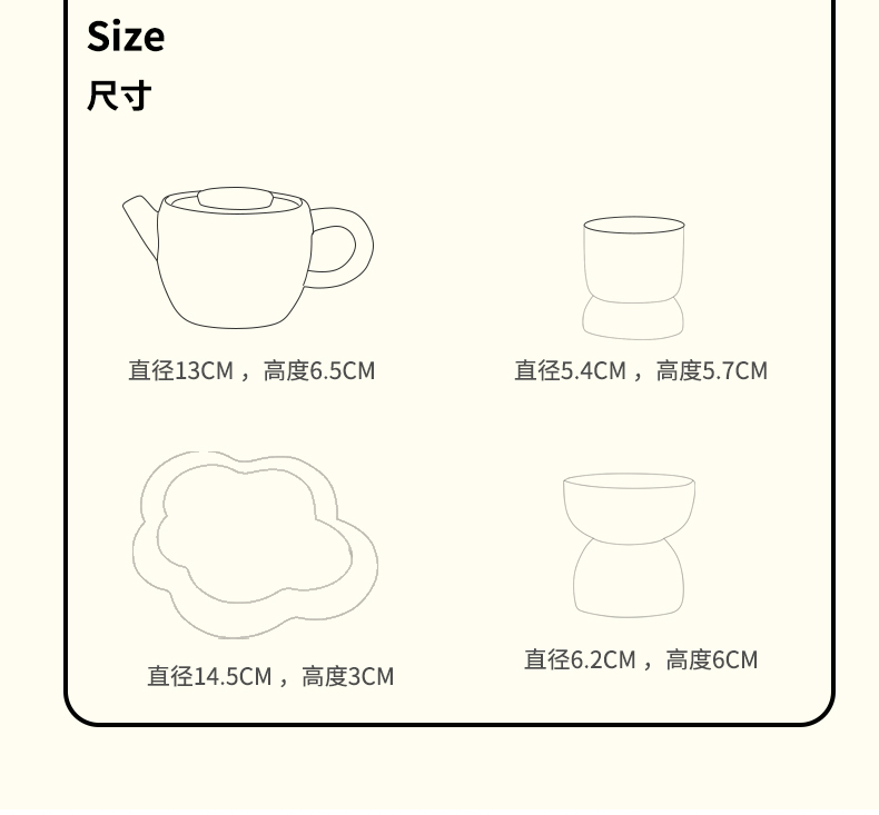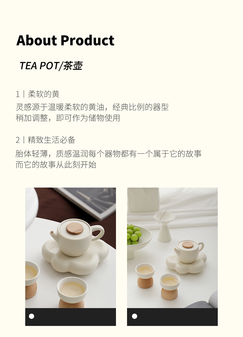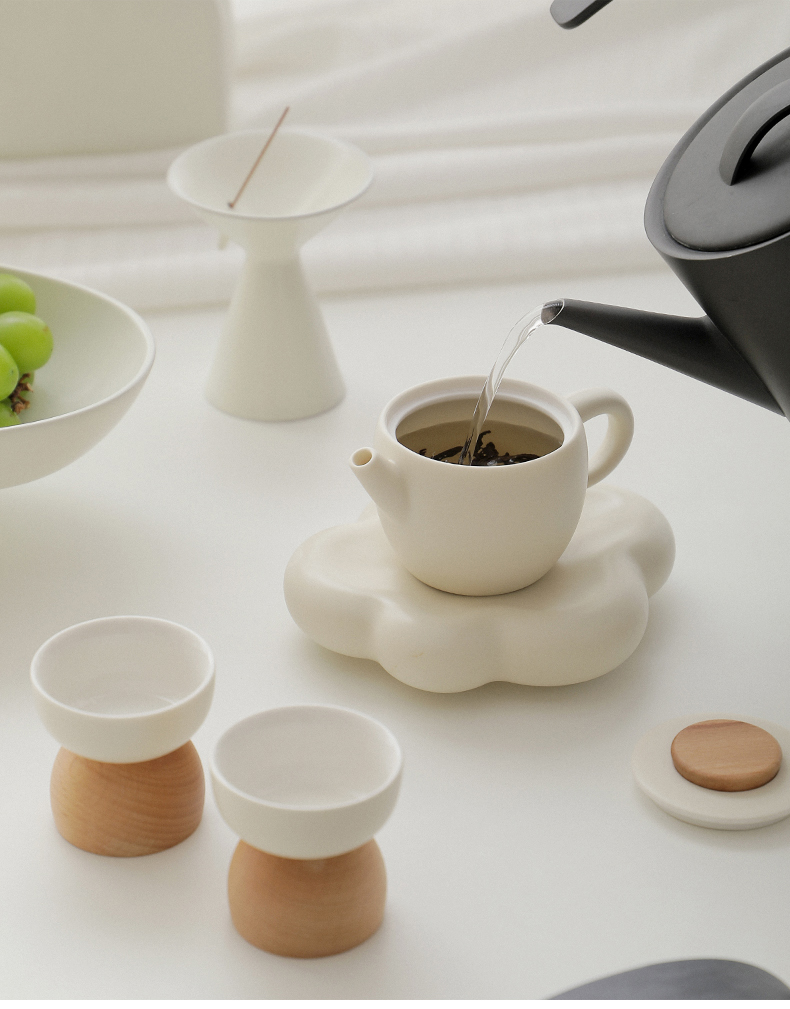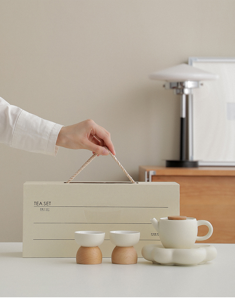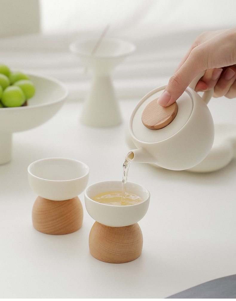 B-BFT2652 沐月巨轮云朵茶具套装 榉木杯座 奶油黄
