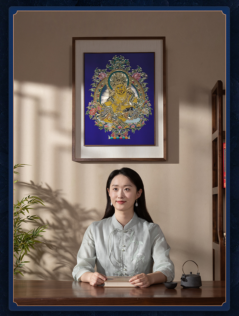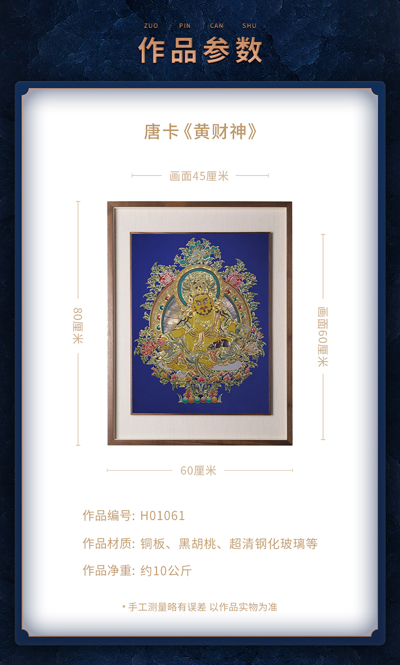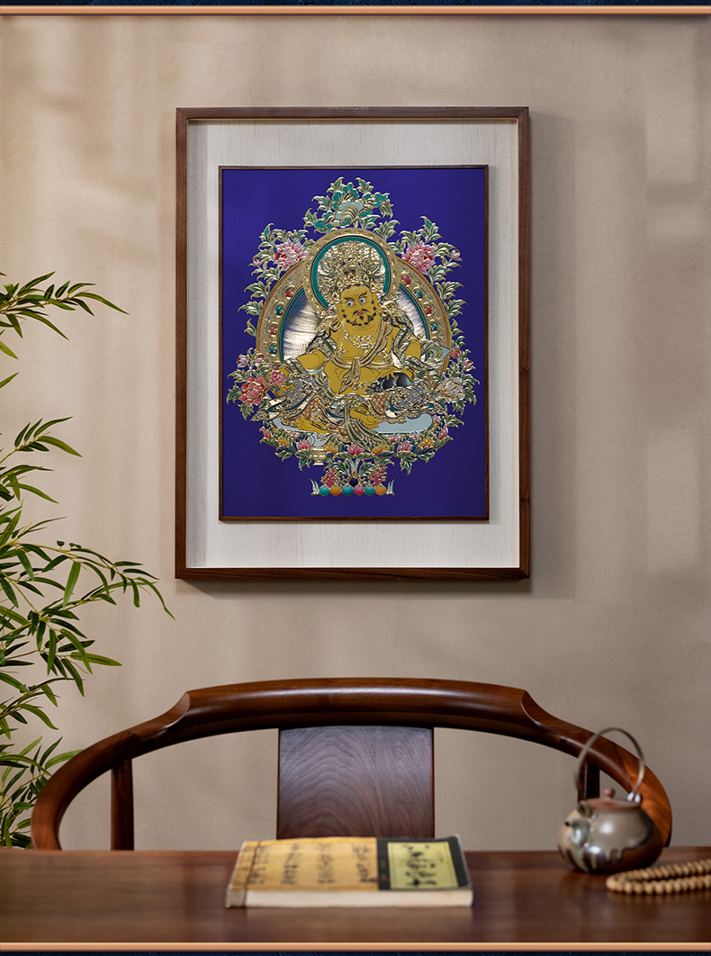 铜师傅 手工錾刻 唐卡《黄财神》客厅玄关画沙发背景墙装饰画挂画
