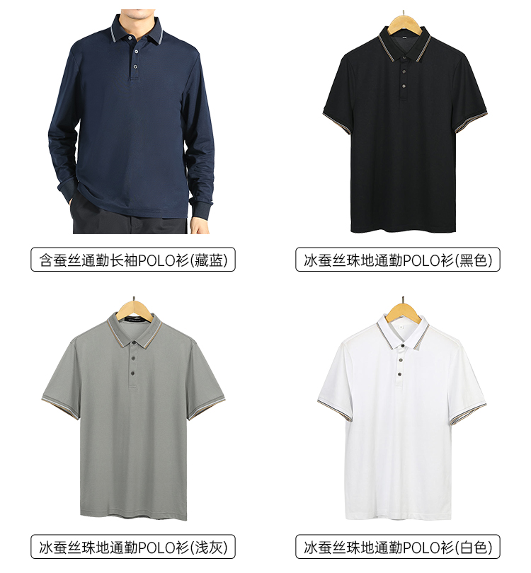 【含蚕丝通勤长袖Polo衫/清仓】爽滑无痕Polo杉撞色翻领打底杉