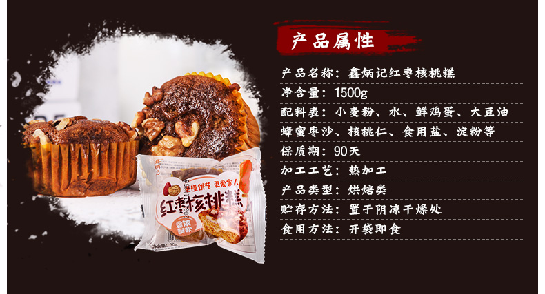 鑫炳记红枣核桃糕1500g整箱山西特产早餐传统糕点休闲零食蛋糕