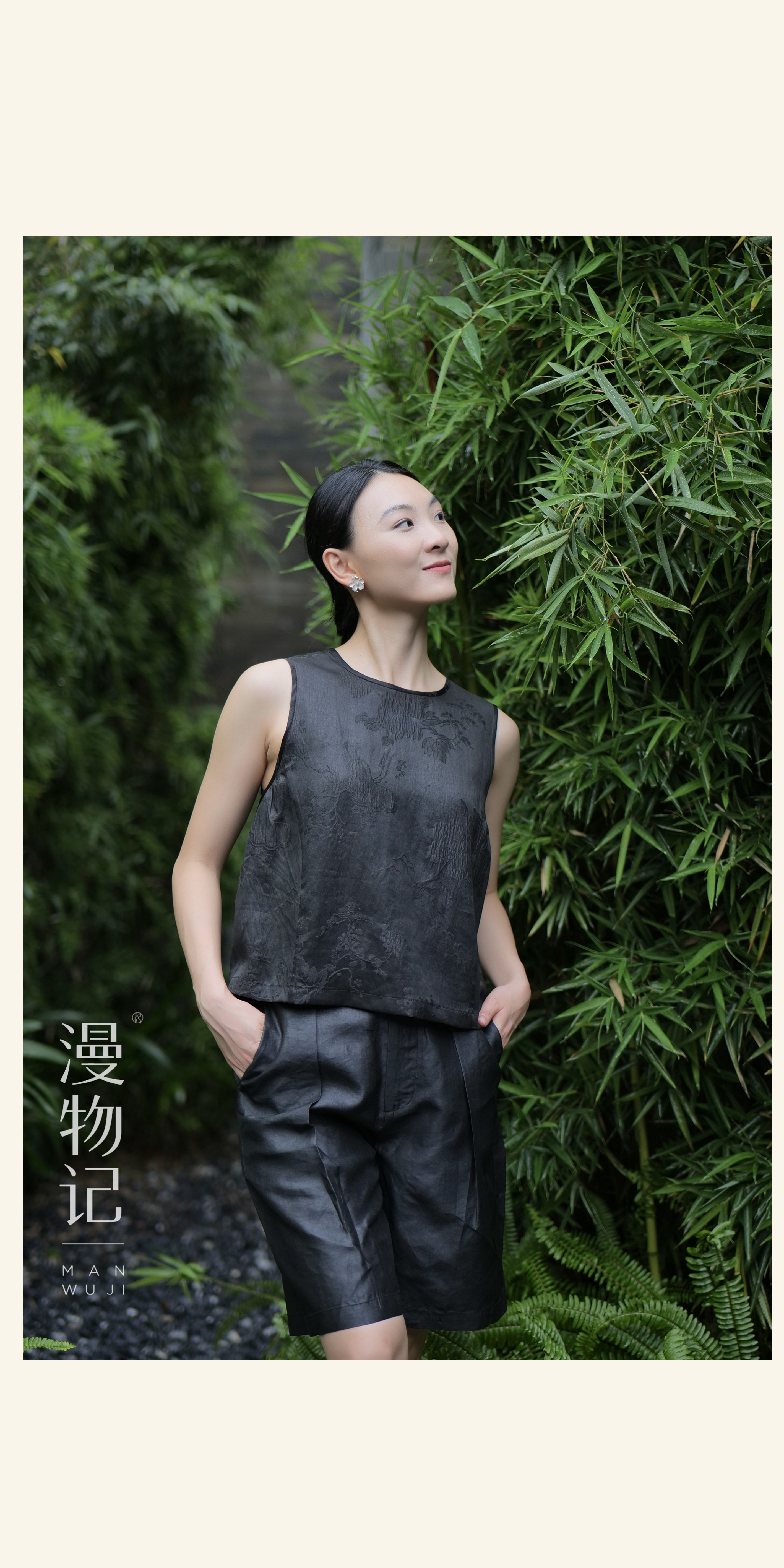 漫物记红云纱五粒扣落肩衫M254