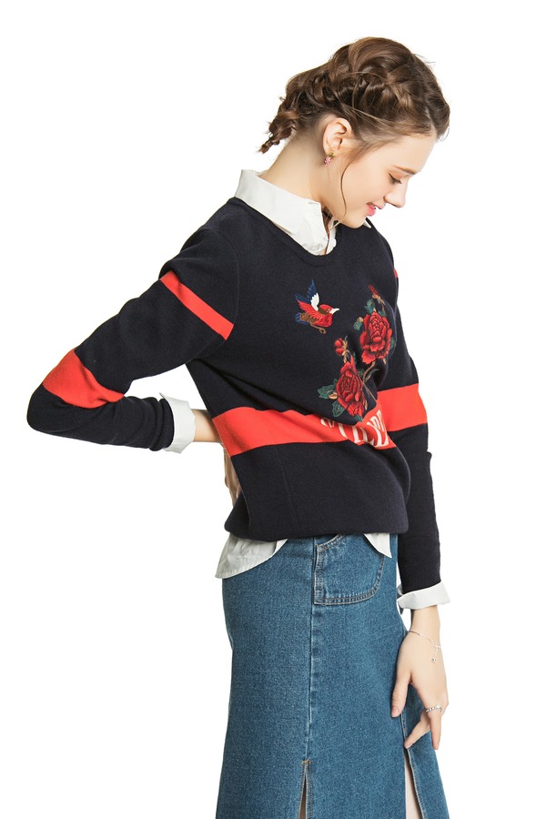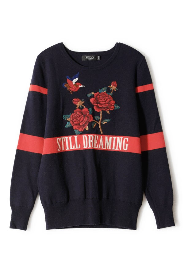 SIEGO 黑色花鸟刺绣毛衣 4026
