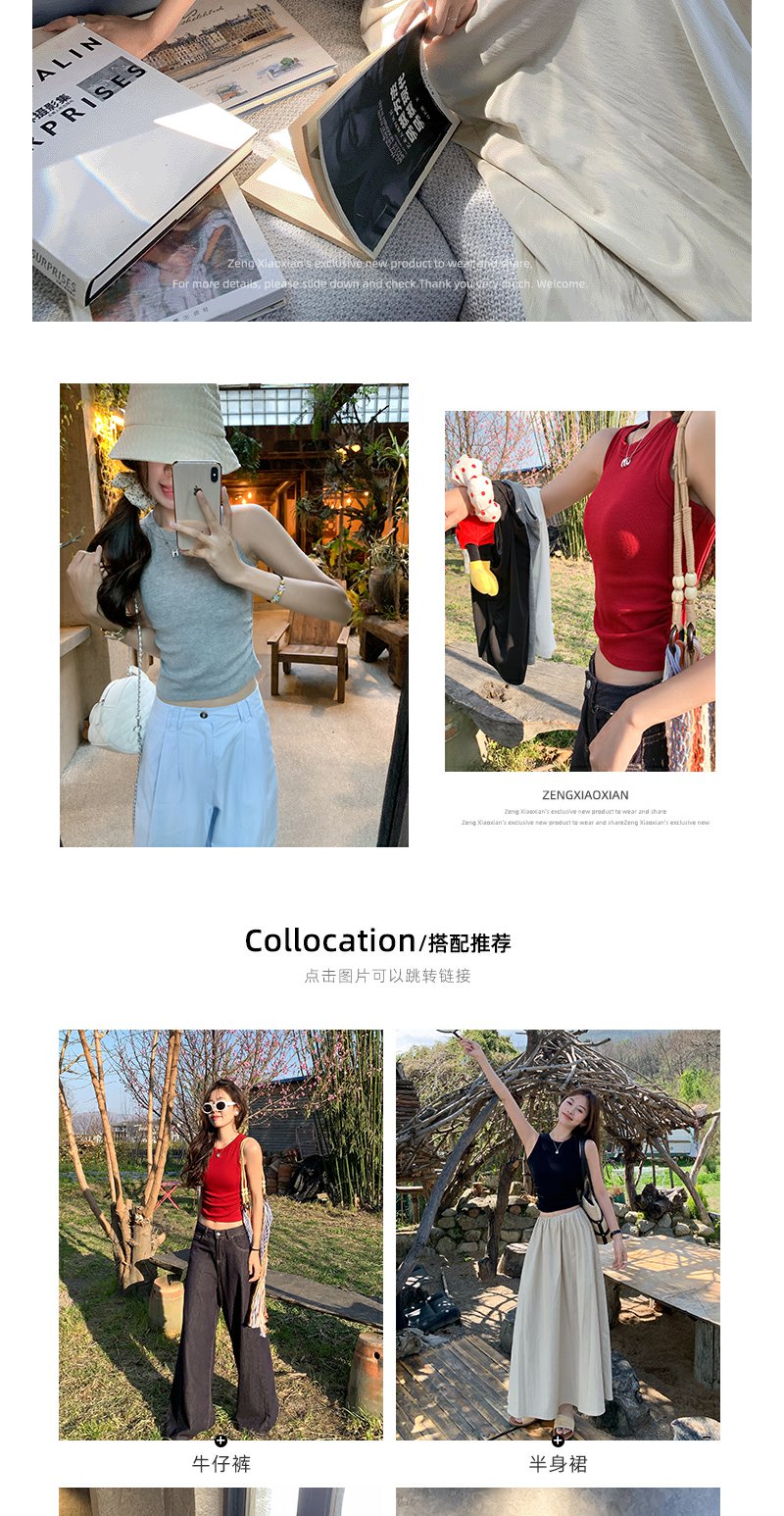 <曾小咸推荐>百搭修身显瘦4色圆领短款背心