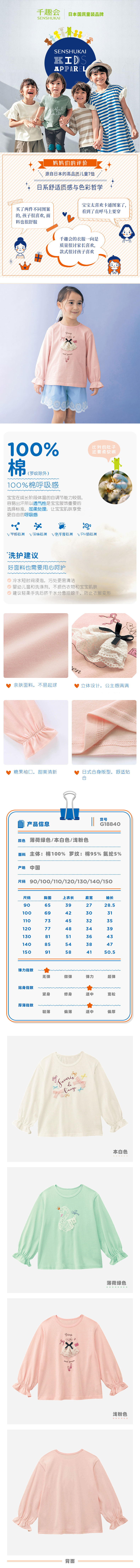 千趣会童装春夏女童立体设计印花公主风纯色柔软棉质长袖T恤