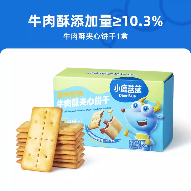 小鹿蓝蓝高钙含铁牛肉酥夹心饼干100g