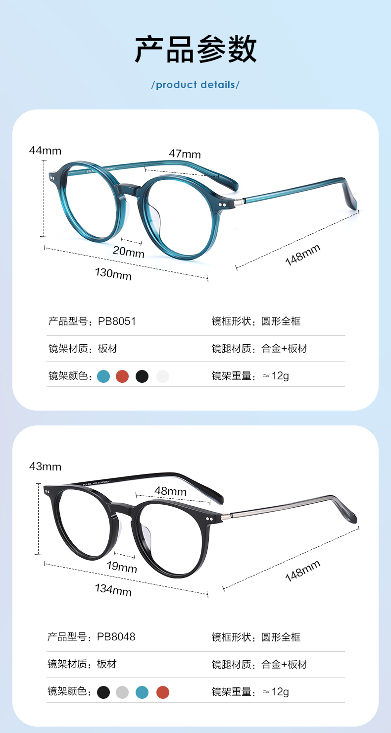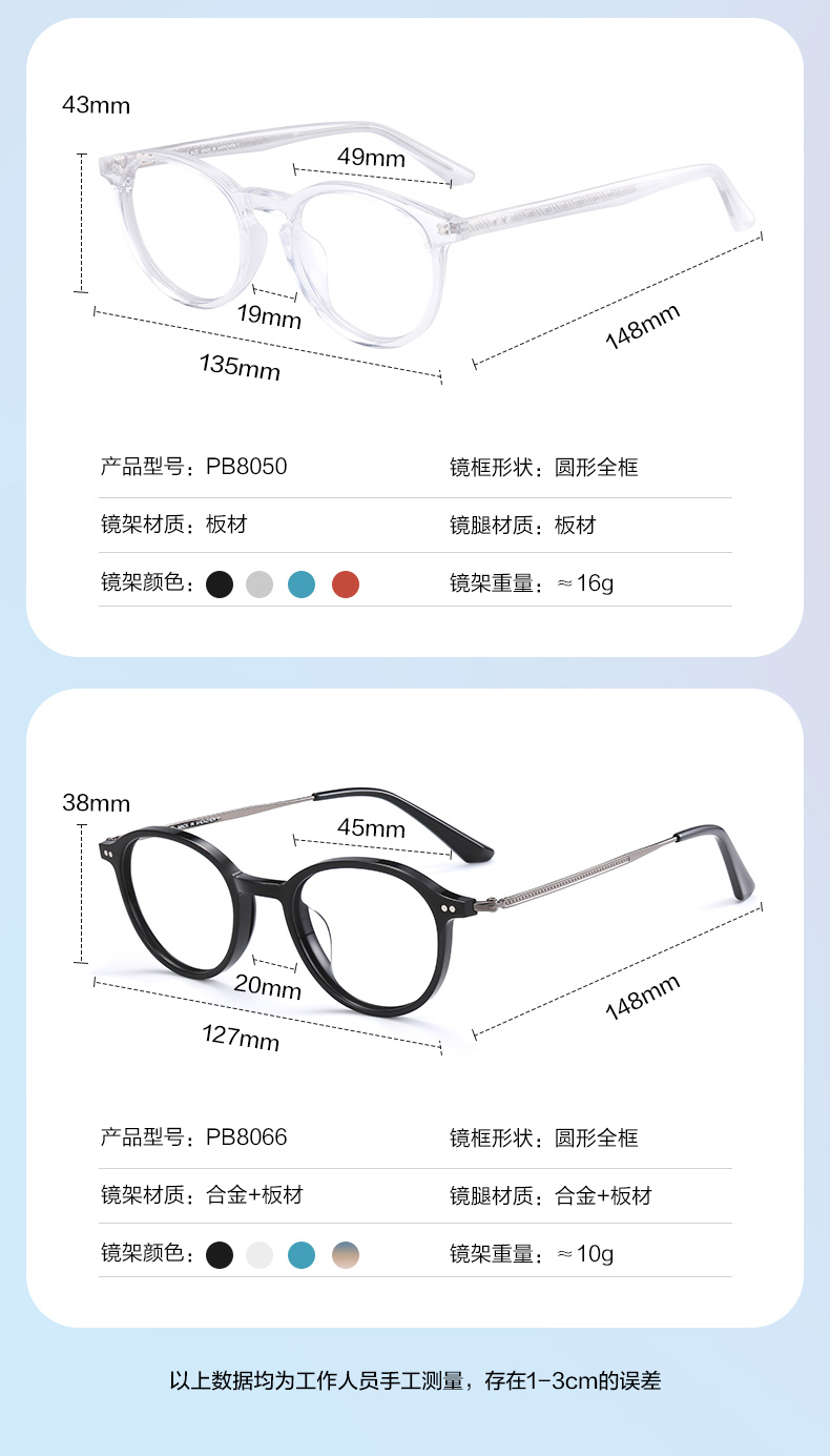 【特价秒杀款】普莱斯PB8048 复古圆框轻巧舒适板材 四色可选