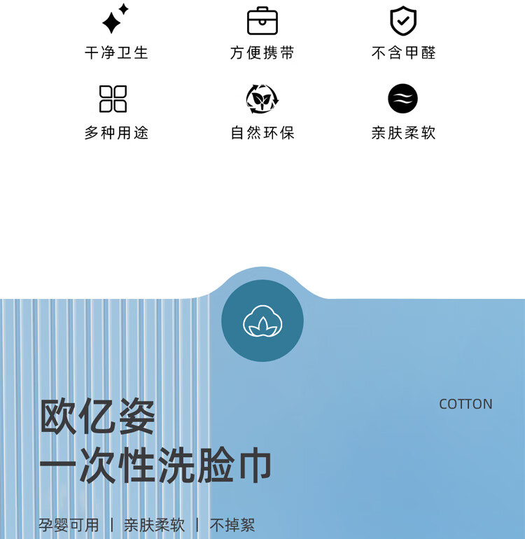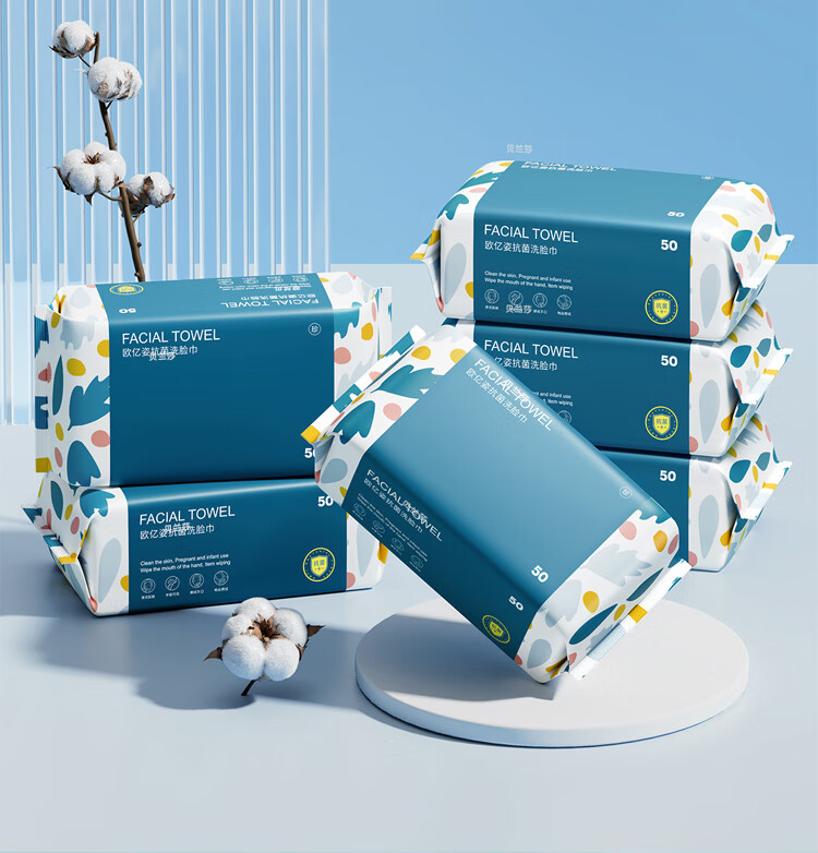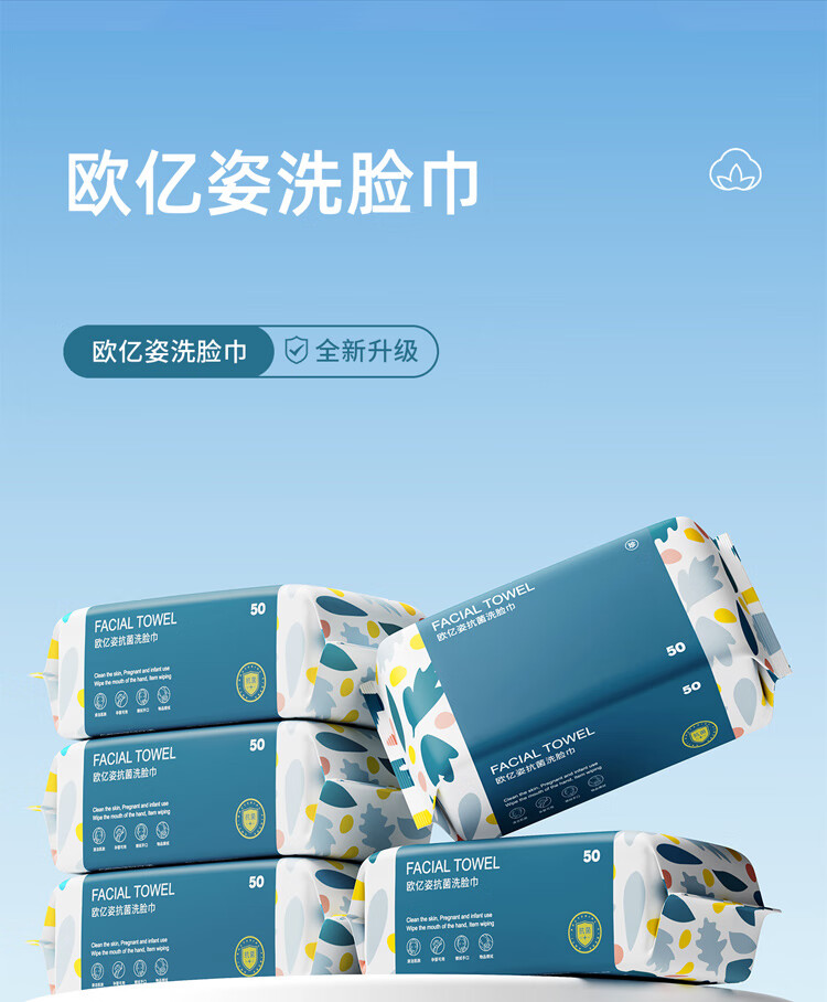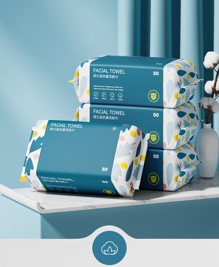 【直发】欧亿姿一次性抗菌抽取式加厚干湿两用洁面巾50抽*6包