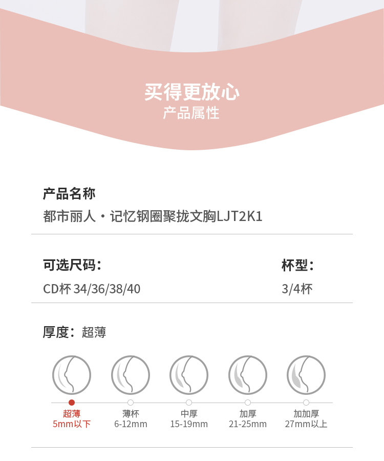 都市丽人调整型内衣美体纤塑塑身文胸蕾丝超薄塑身内衣3/4杯四排扣LJT2K1