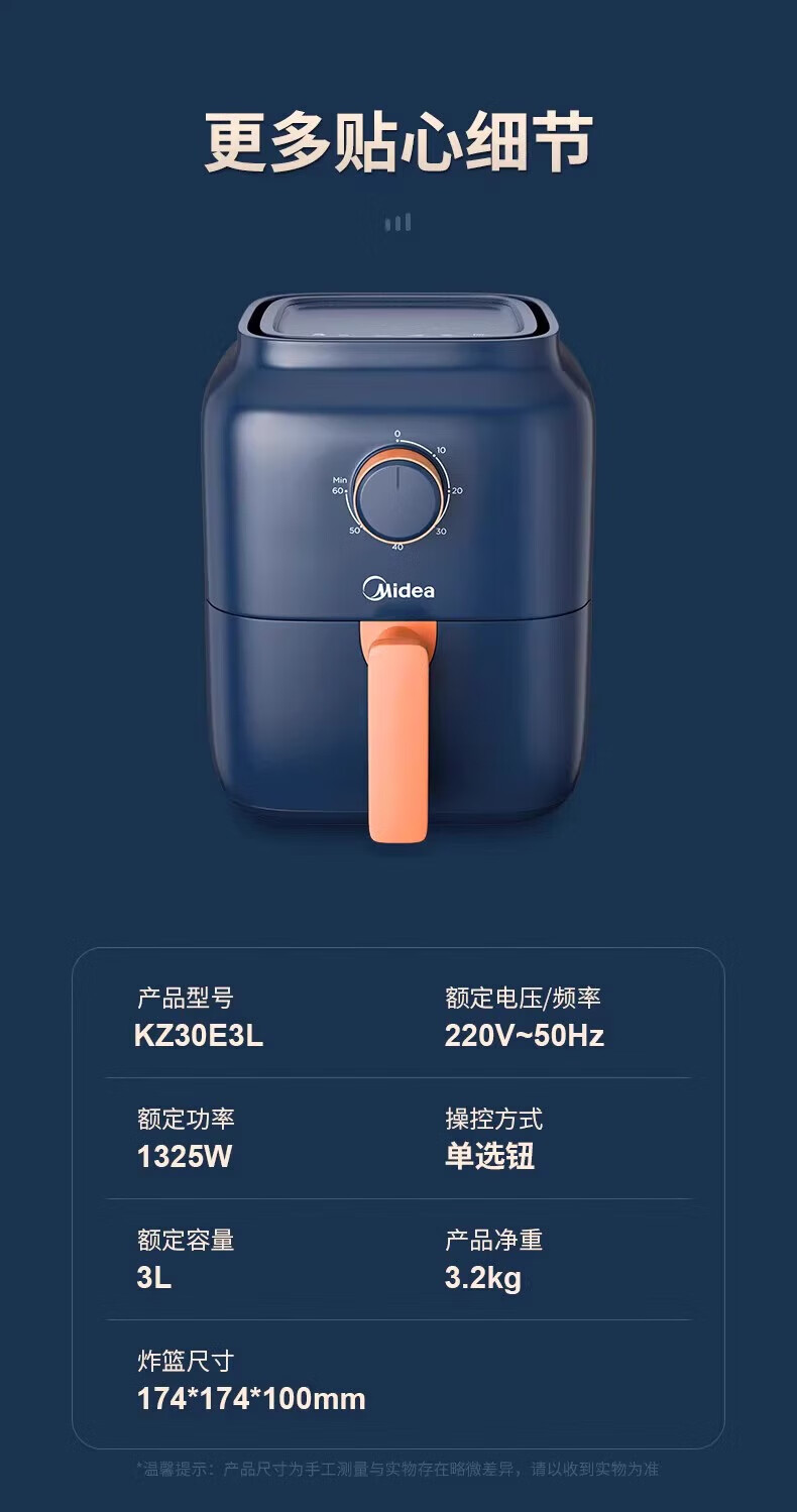 【自营】美的煎蒸炖面空气炸锅KZ30E201