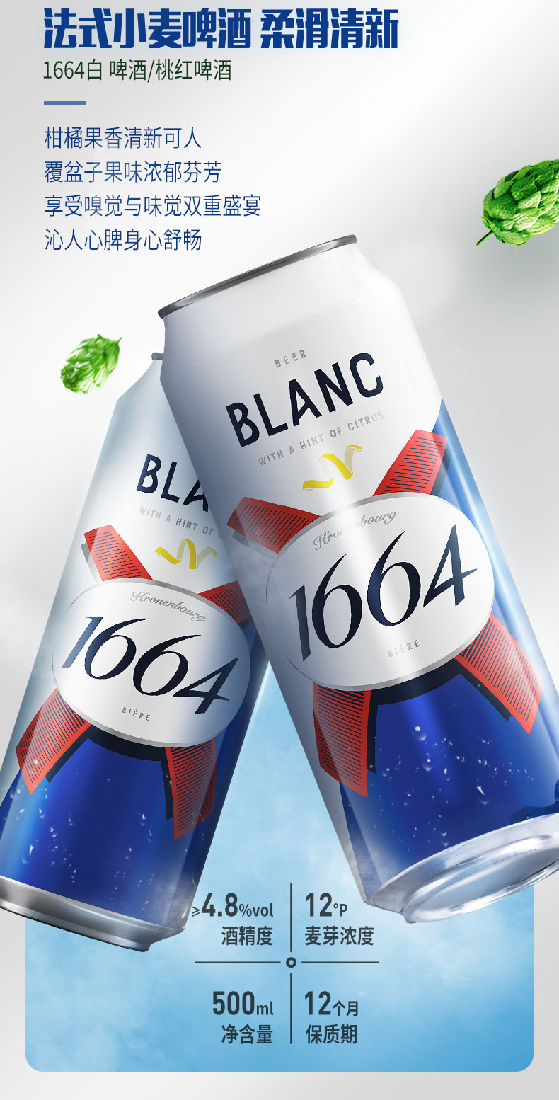 【部分地区缺货】嘉士伯畅饮套装500ml*12罐(1664桃红啤酒*6+风花雪月桃花味*6)新旧包装随机发