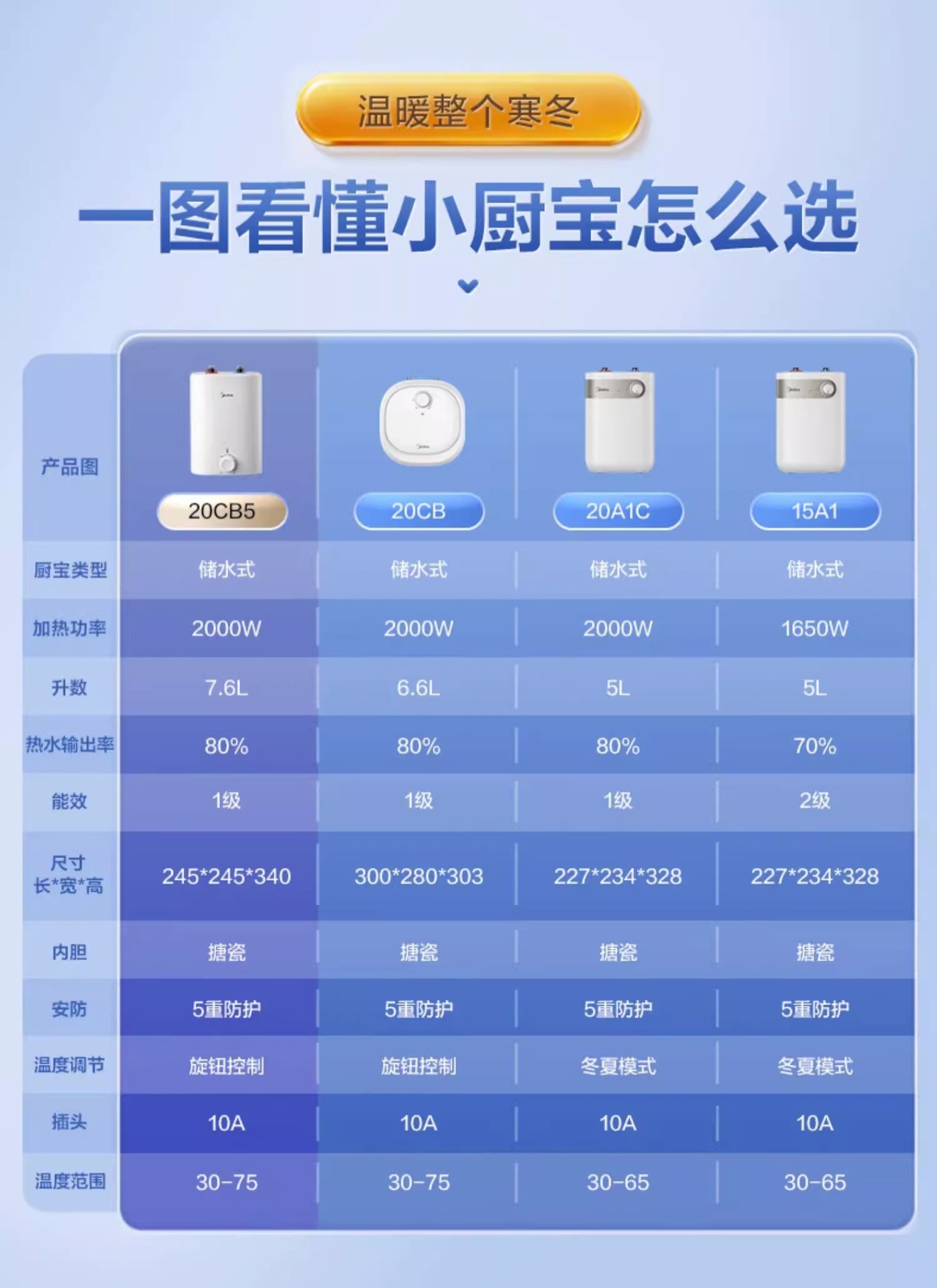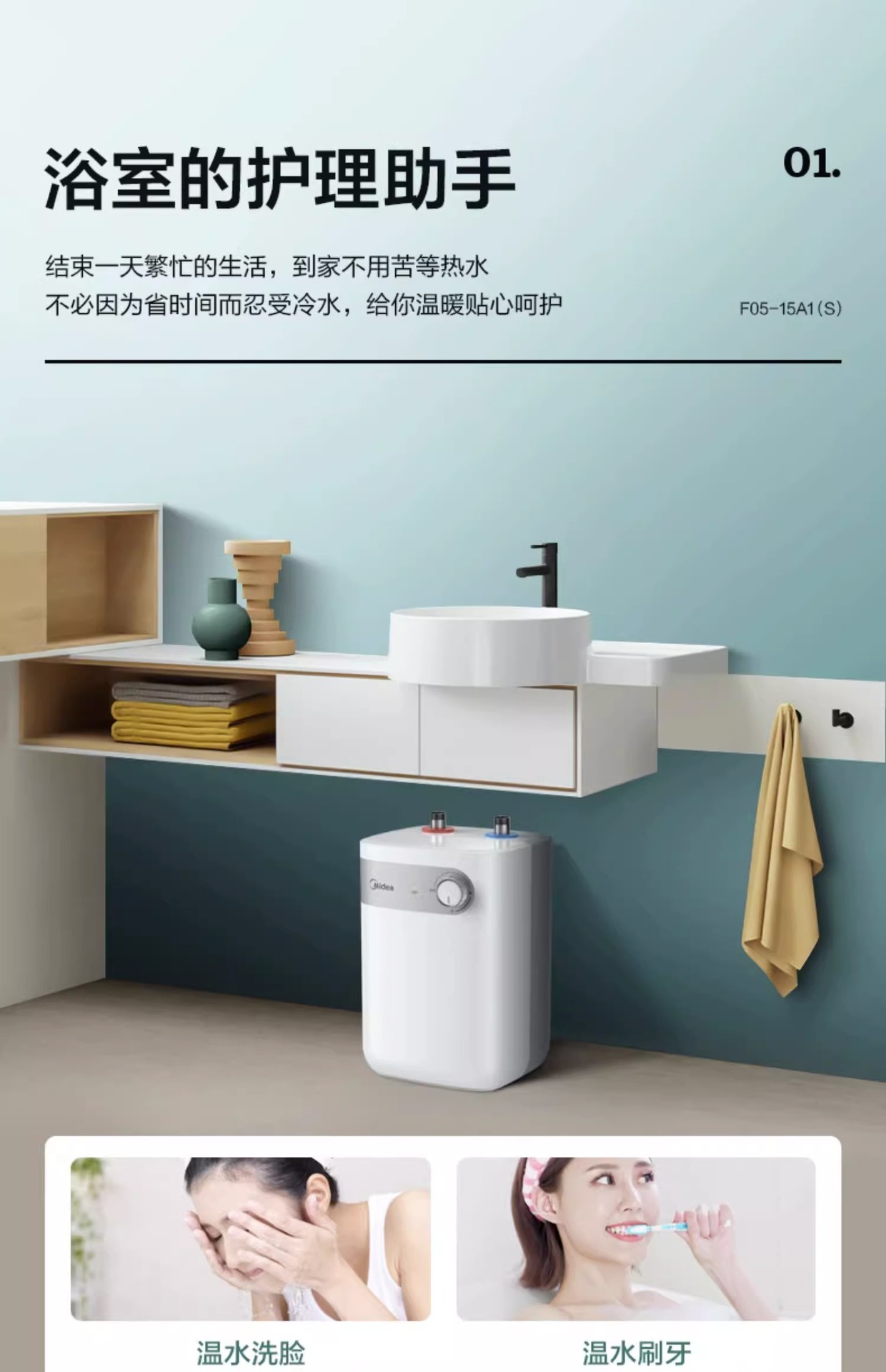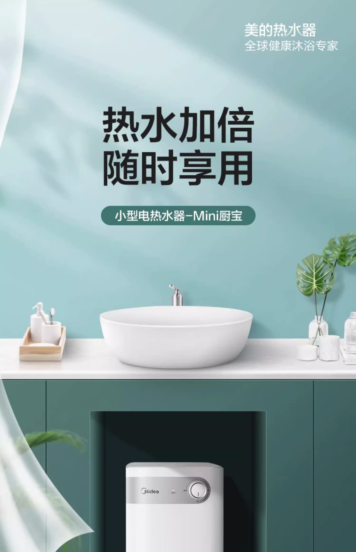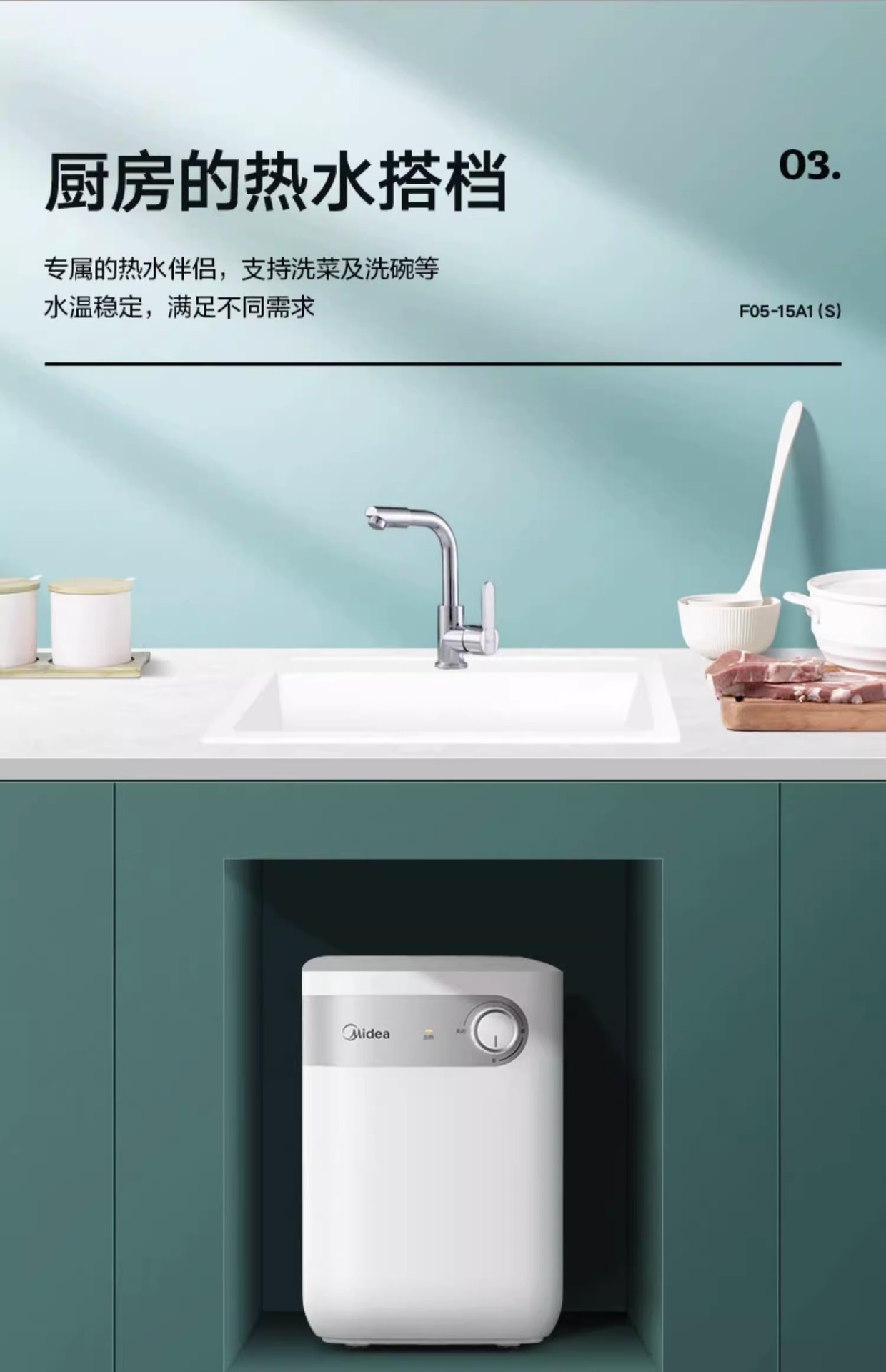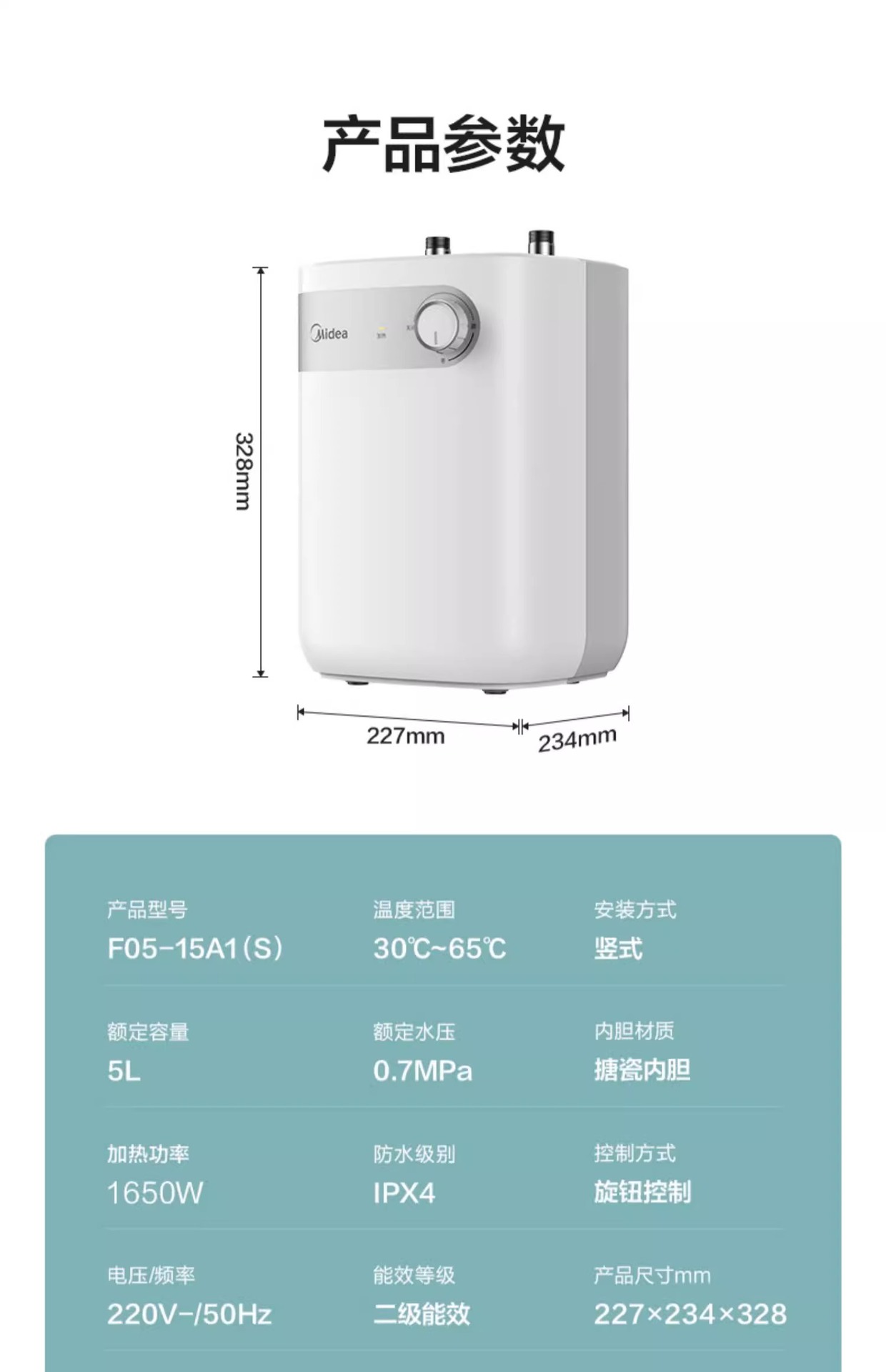 美的 小厨宝家用厨房热水器热水宝5L储水式卫生间小型电热水器15A1