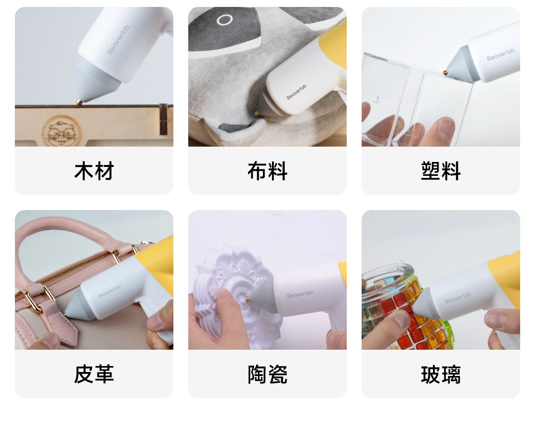 操作步骤也超简单:只需将胶棒塞进胶枪后面的管口,通上电源以后,不到15秒,按压就能出胶,直接挤到需要粘合的东西上面,几分钟就干了。