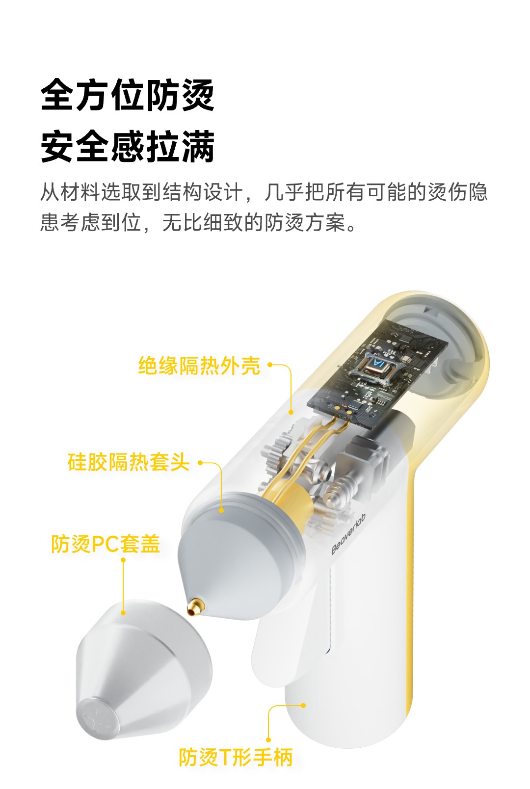 ✅ 三层防烫:全身绝缘材质隔断热源,防烫胶嘴减少接触面,2.5mm小口径金属头精准控温,触碰不烫伤;