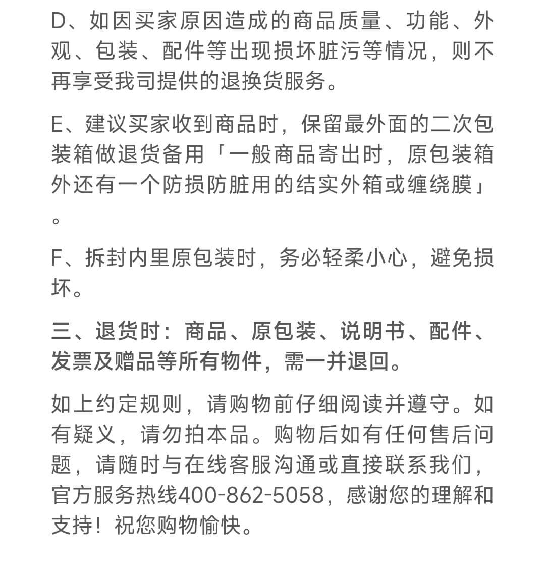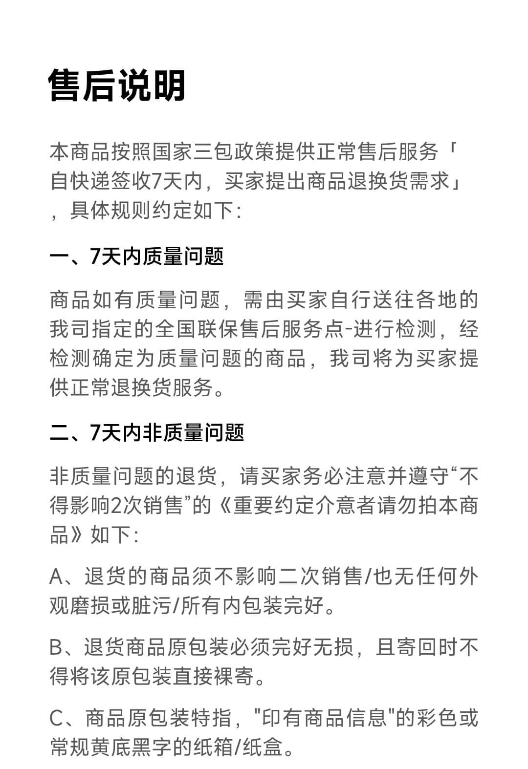 )产品在不影响二次销售的情况下,支持7天无理由退货