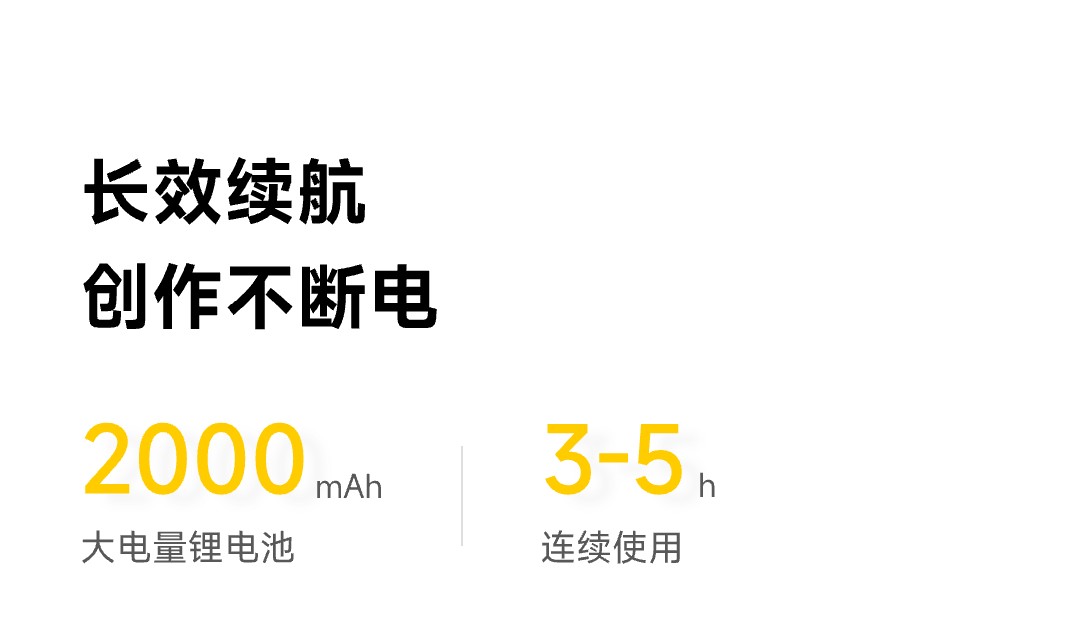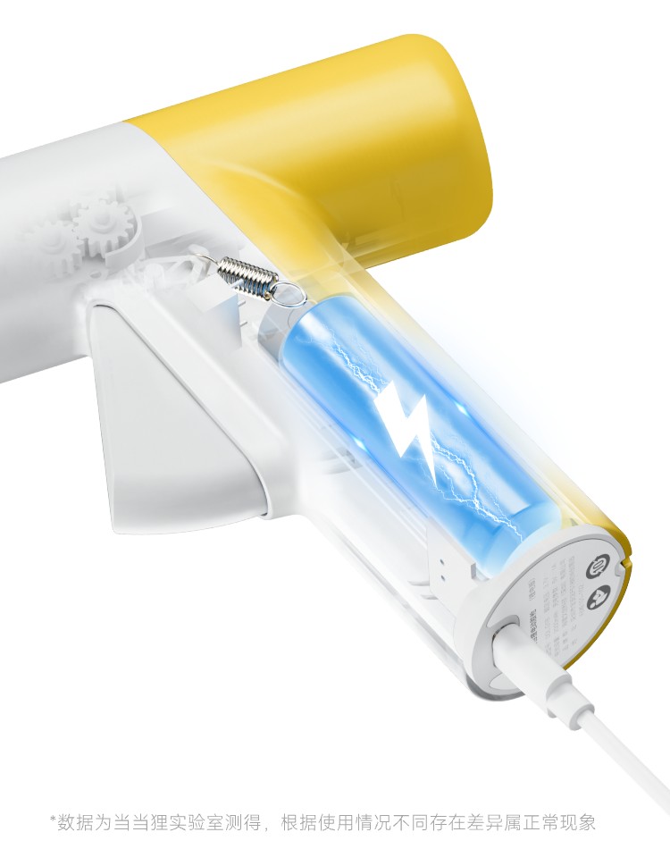 机身和手机差不多大,斜T型手柄贴合手型,单手握持不费力,随拿随用。内置锂电池,充1次电用3-5小时,Type-C接口支持排插、充电宝充电,摆脱电线束缚,户外、客厅都能用。