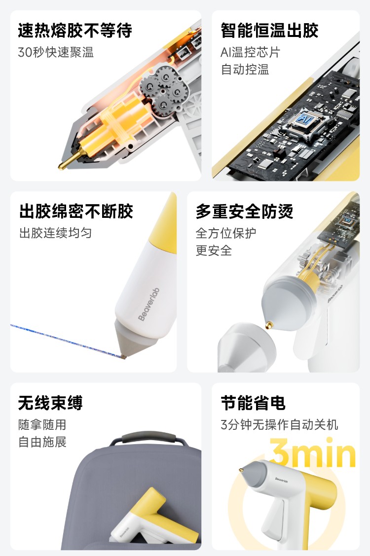 ✅ 智能断电:3分钟无操作自动关机,避免溢胶浪费,杜绝忘记关机的安全隐患;