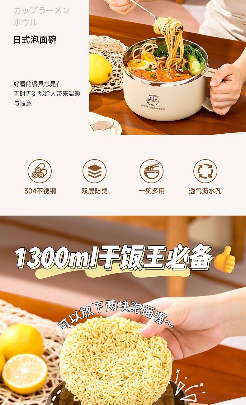 【宿舍shen器推荐!】304不锈钢泡面碗!大容量带盖带手柄!可沥水设计!学生宿舍必备饭盒神器!XPBHXH11