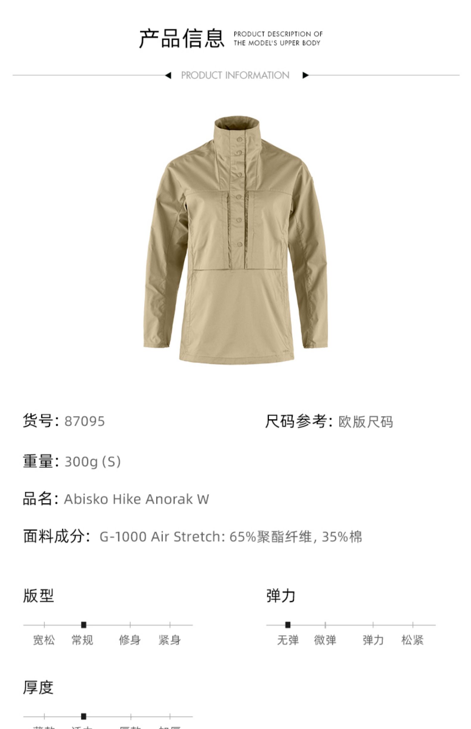 北极狐2024春新款G-1000女士户外套头舒适透气连帽外套夹克87095