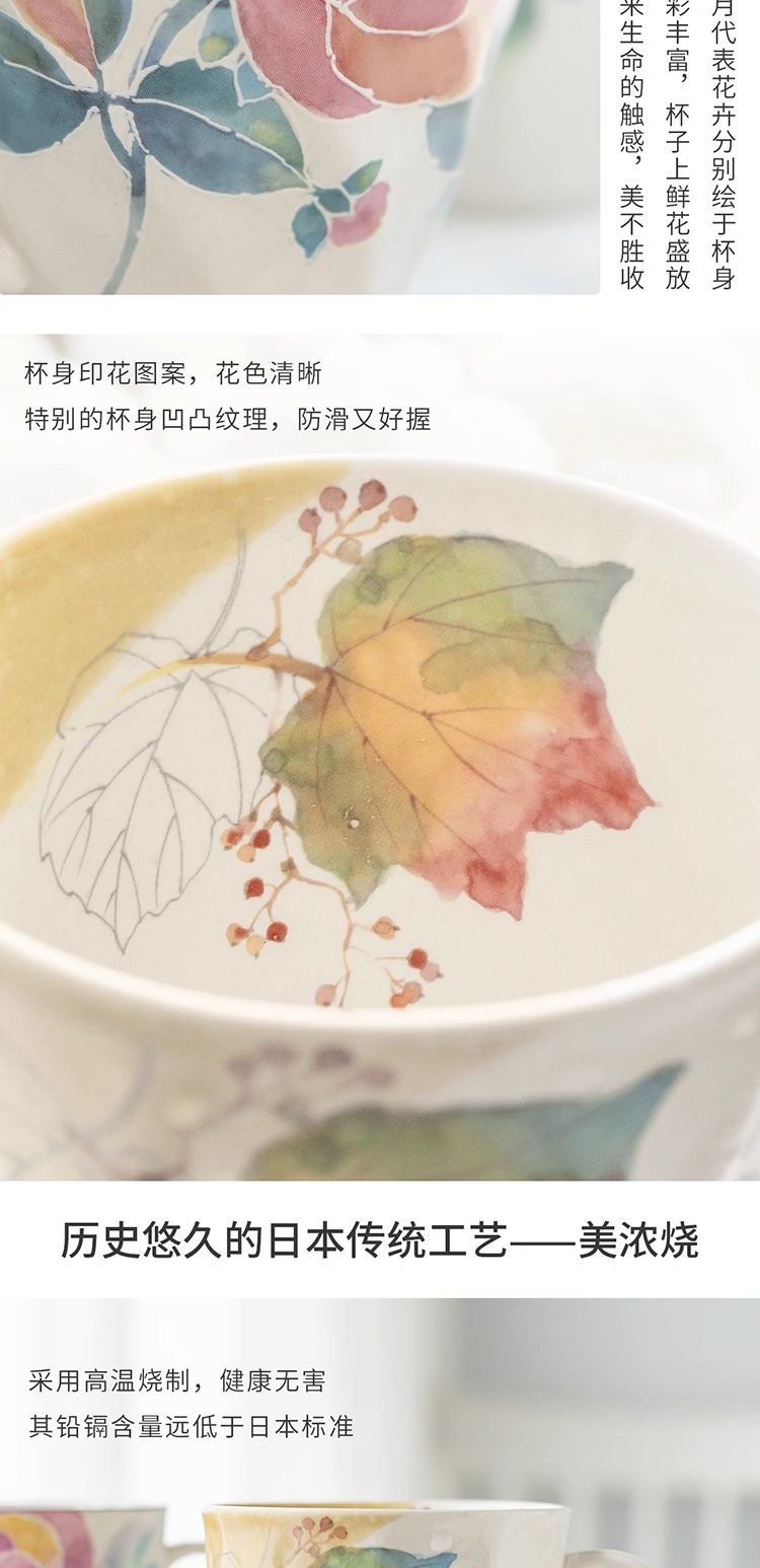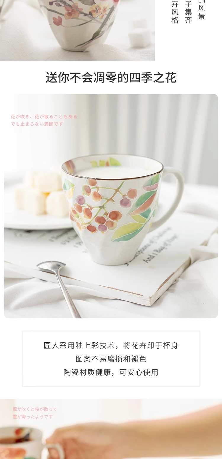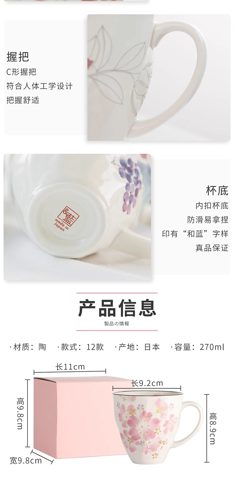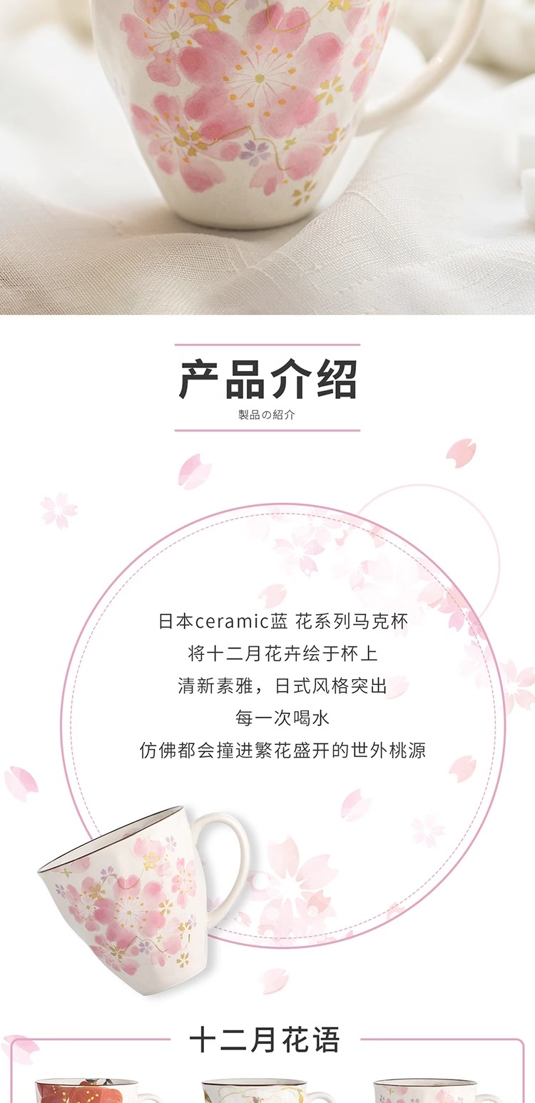 日本和蓝12月马克杯樱花骨瓷茶杯咖啡杯水杯日式花朵进口和蓝马克杯