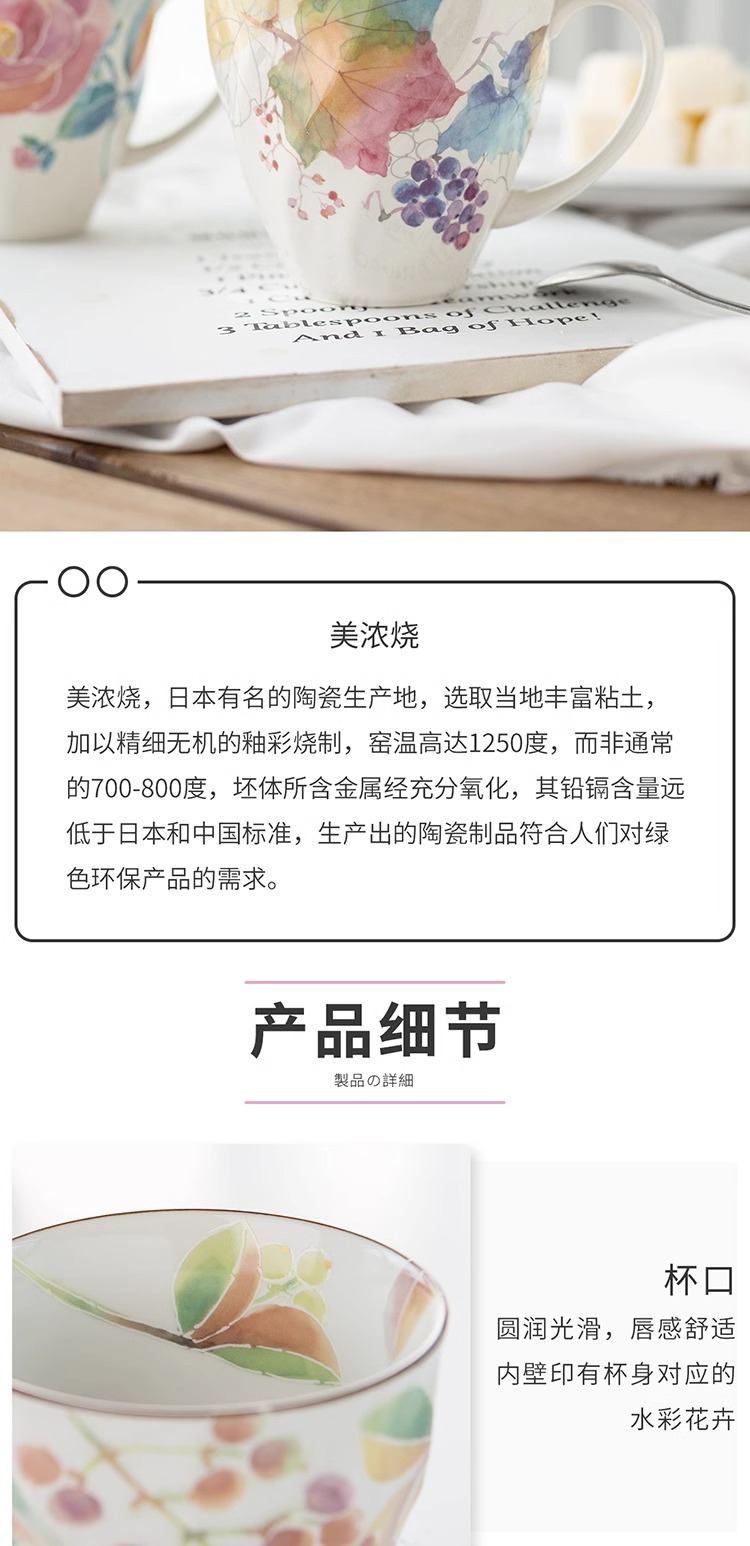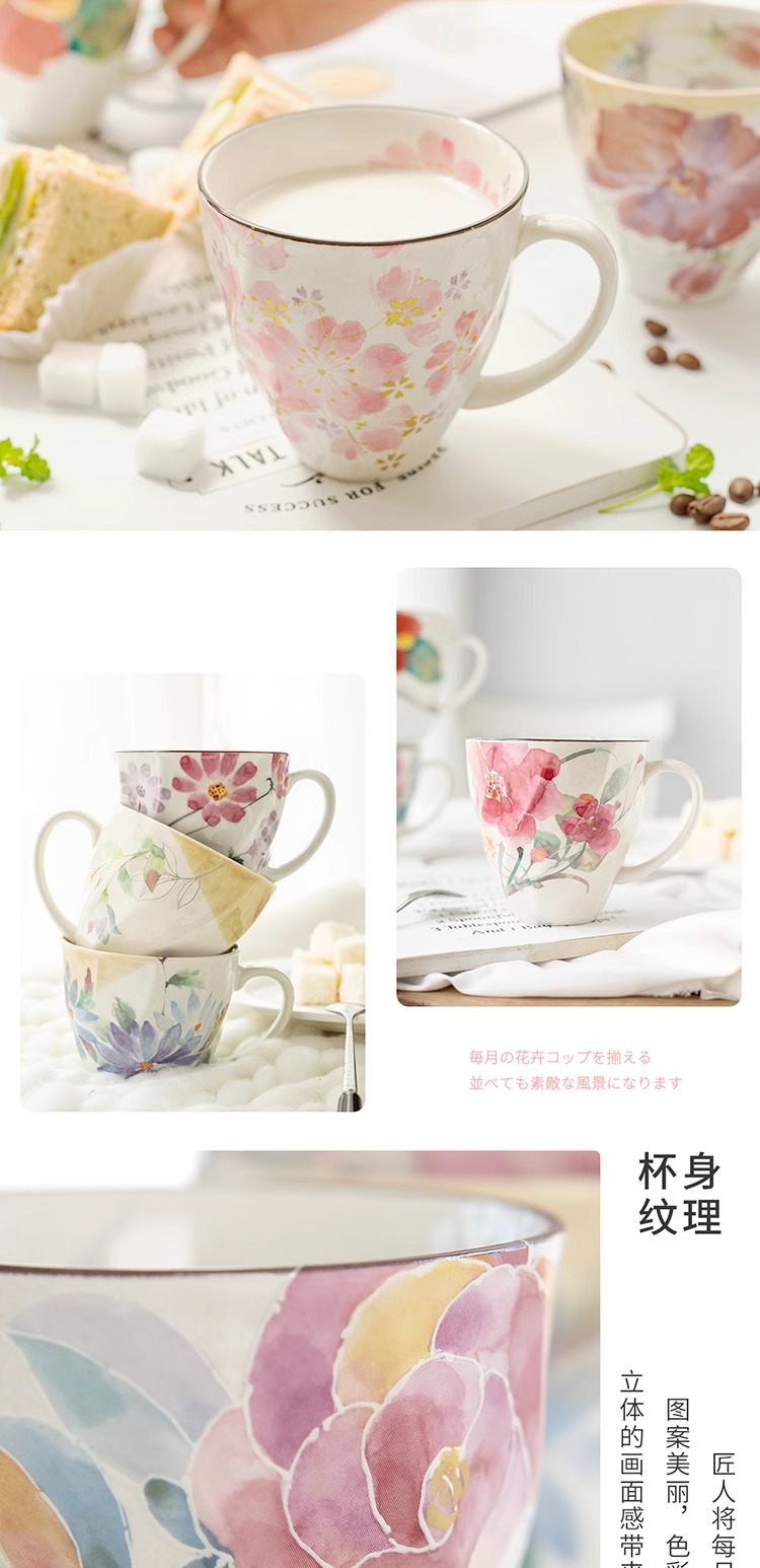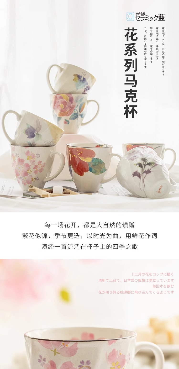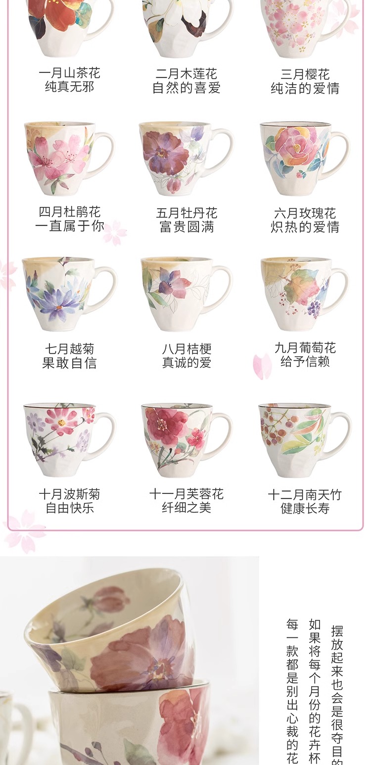 日本和蓝12月马克杯樱花骨瓷茶杯咖啡杯水杯日式花朵进口和蓝马克杯
