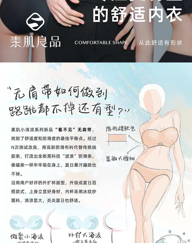 素肌良品 无肩带内衣女 无痕抹胸 MX212 【G】