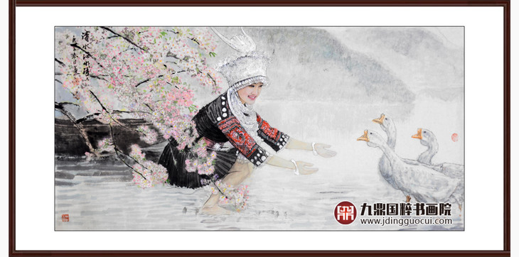 赵金文《清水江水清清》68*138cm 人物横幅作品 茶室/客厅挂画