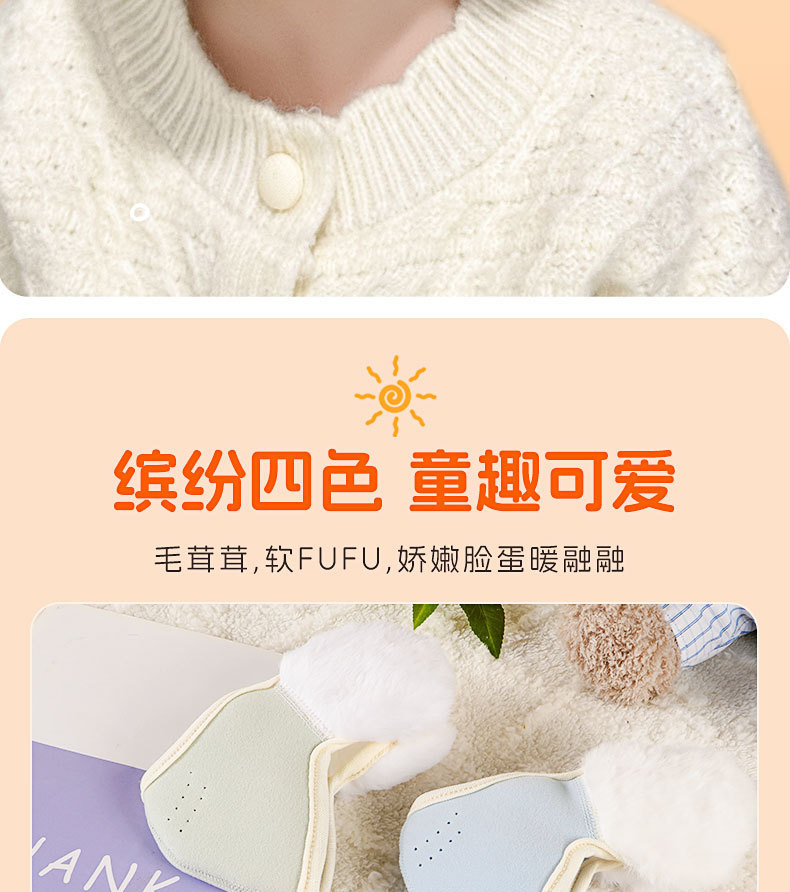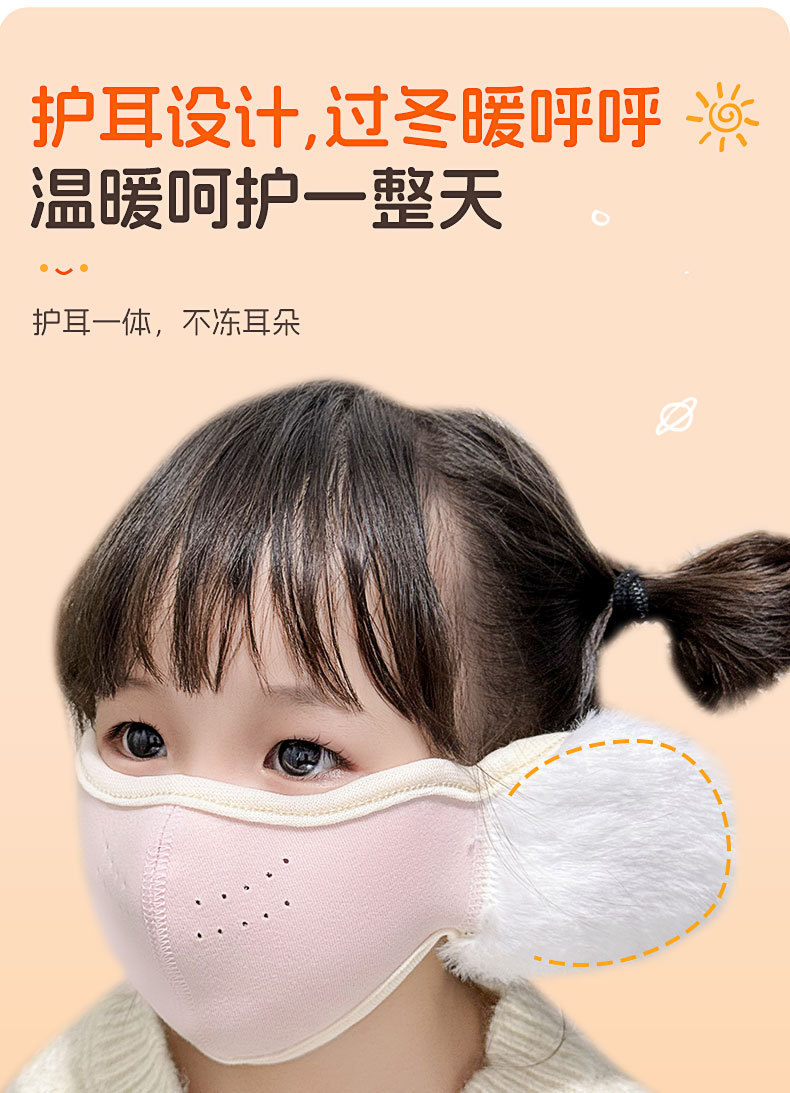儿童透气保暖口罩卡通护耳儿童保暖口罩防风抗冻保暖御寒可水洗儿童防寒口罩3d立体护耳保暖