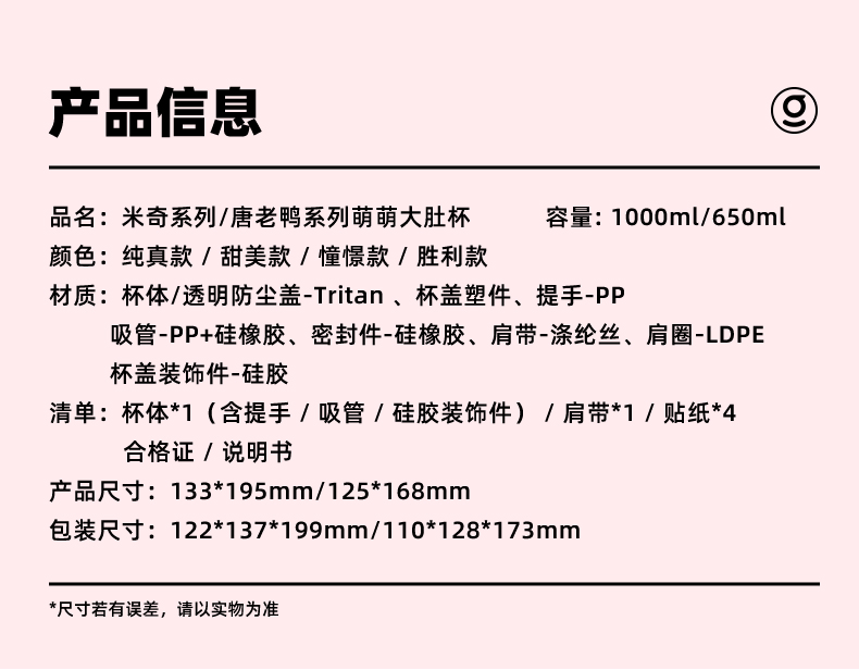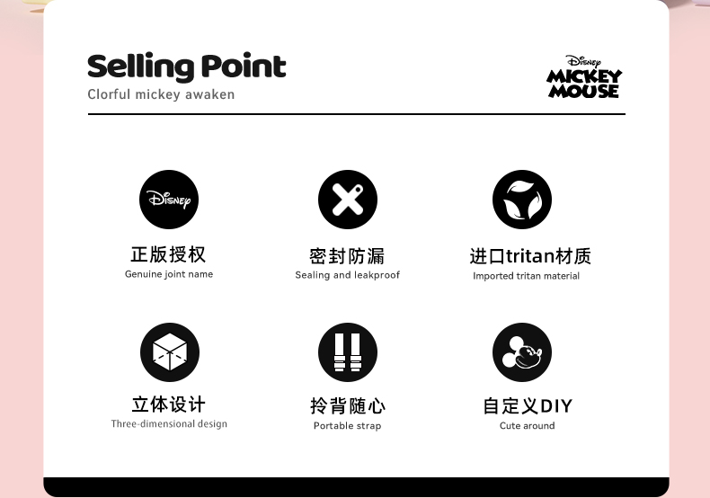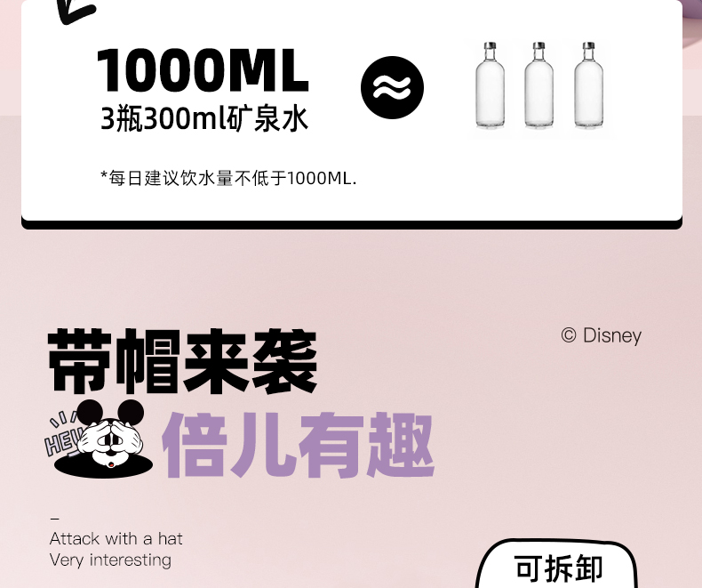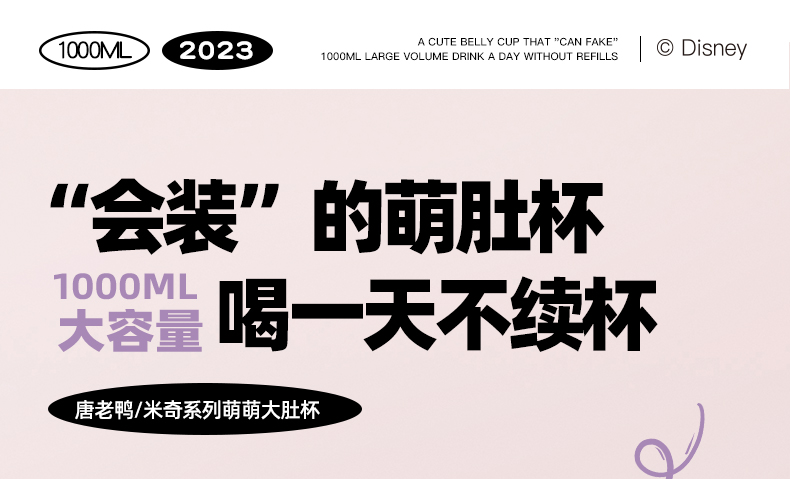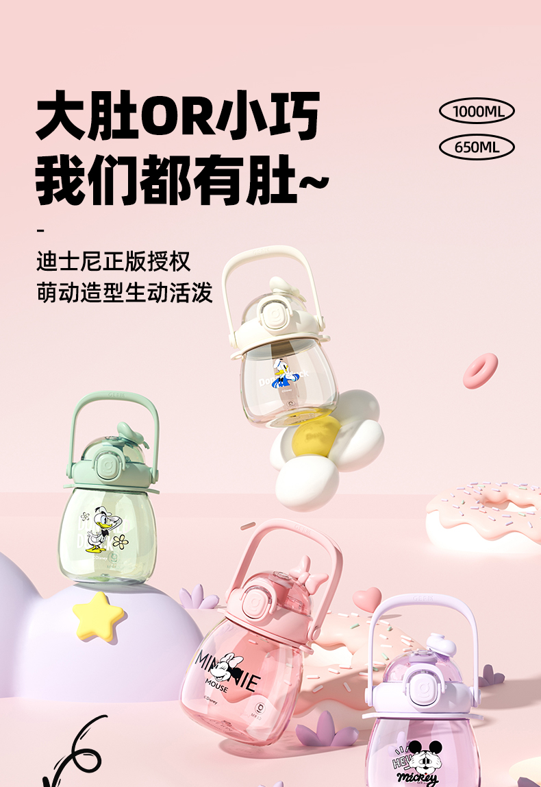 格沵(germ)迪士尼联名高颜值吸管水杯儿童学生运动水壶夏季大肚杯子1000ml【不支持补差,非质量问题不退不换】S