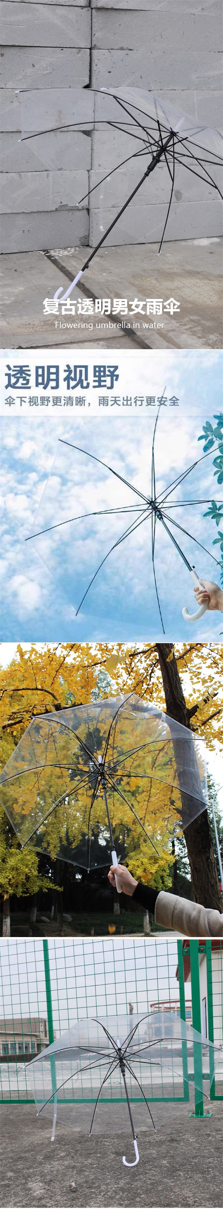 雨伞长柄手动透明小雨伞 1把 小清新透明伞少女儿童手绘雨伞