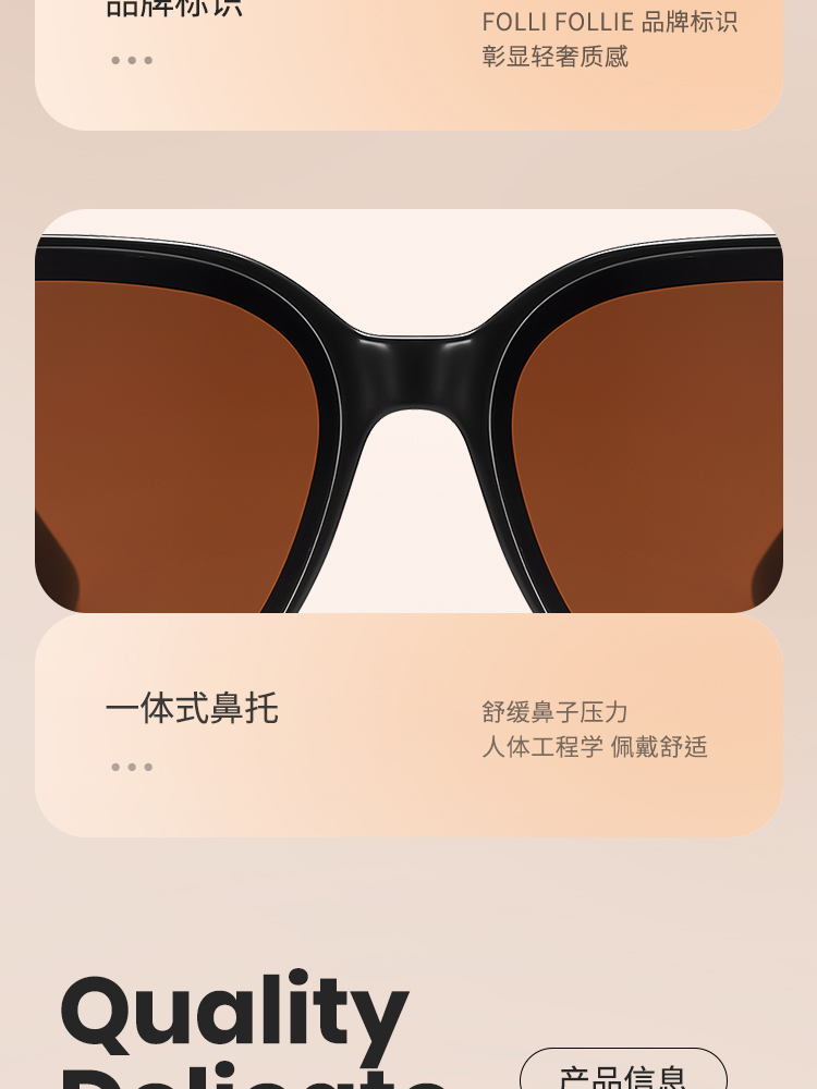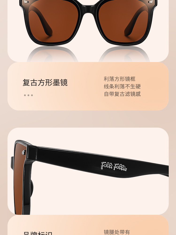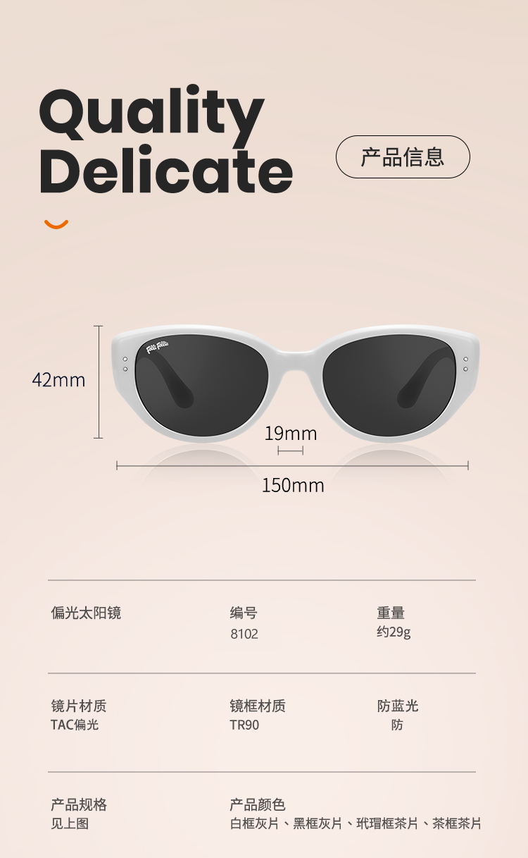 【品名】FolliFollie 云影猫眼太阳镜 高清镜片 8102 【规格】黑框灰片、白框灰片、茶框茶片、玳瑁框茶片 【品名】FolliFollie 高清偏光太阳镜 8100 【规格】黑框灰片、黑框茶片、白框灰片 【产地】国内 【发货包装】独立包装 【发货地】浙江 【发货快递】圆通 【补邮费地区】新疆、西藏+10元 【发货时效】48-72小时,周末节假日顺延 |