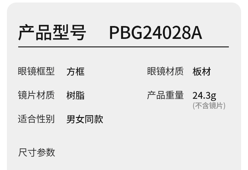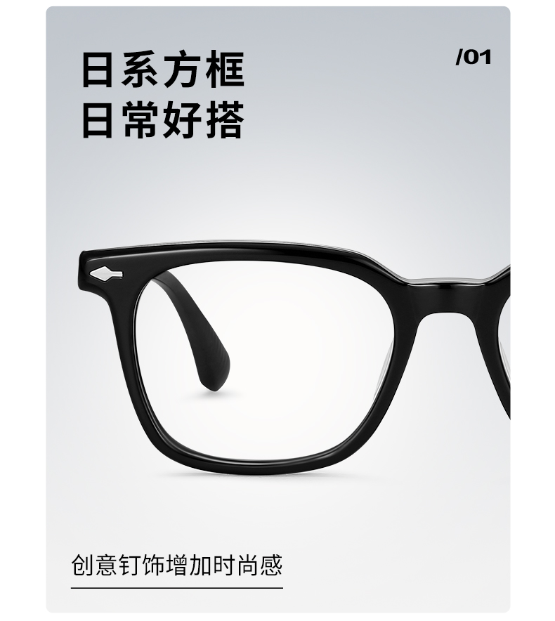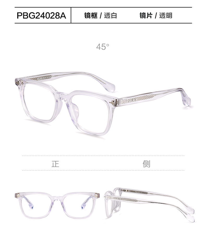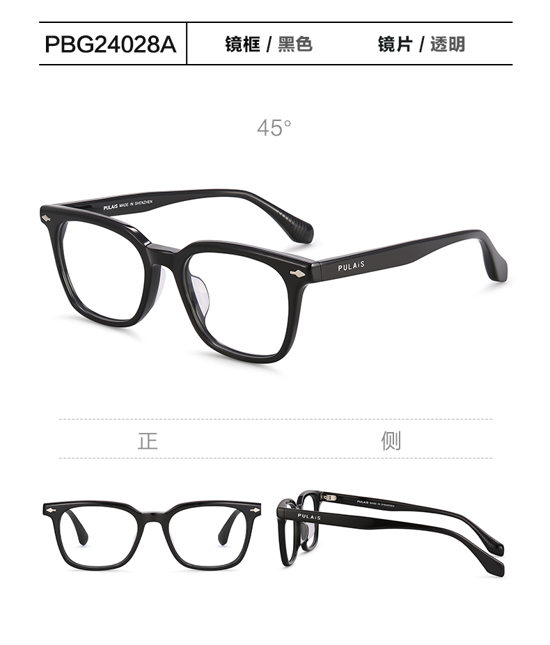 普莱斯光学镜框PBG24028A 板材镜框不易破损 宽边设计配镜片更美观 男女同款 三色可选