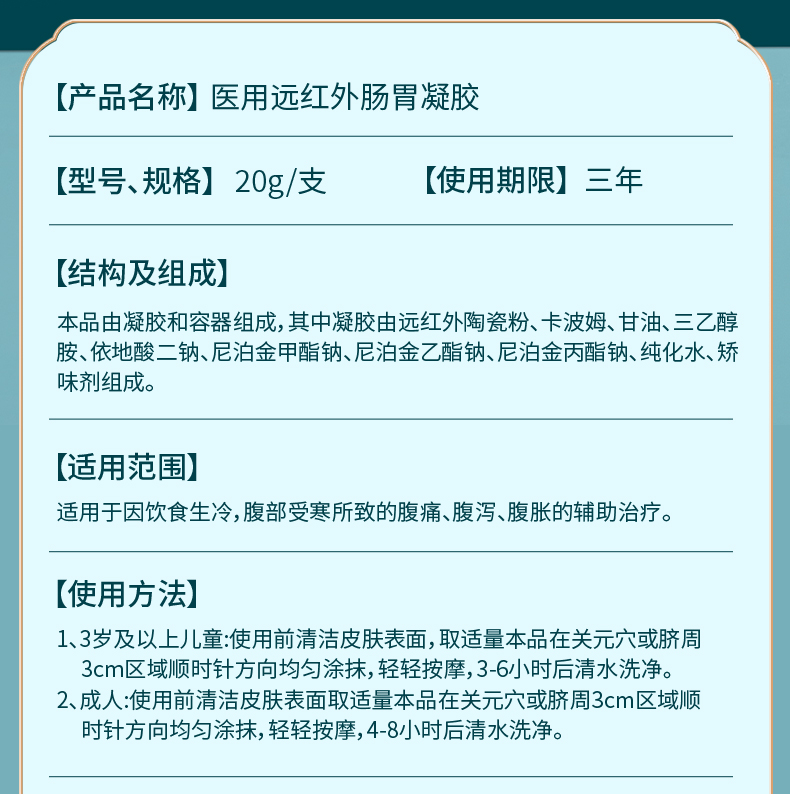 天宝药业医用远红外肠胃凝胶适用腹部受寒腹部胀痛腹泻腹胀正品