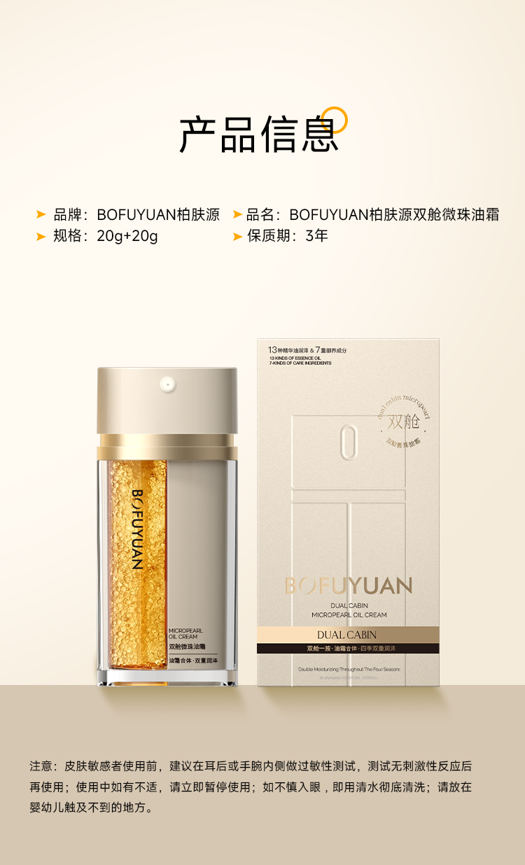 【双管齐下 油霜同补】柏肤源双舱微珠油霜