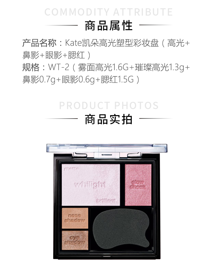 【清仓好价】Kate凯朵高光塑型彩妆盘(高光+鼻影+眼影+腮红)(效期至24.8)