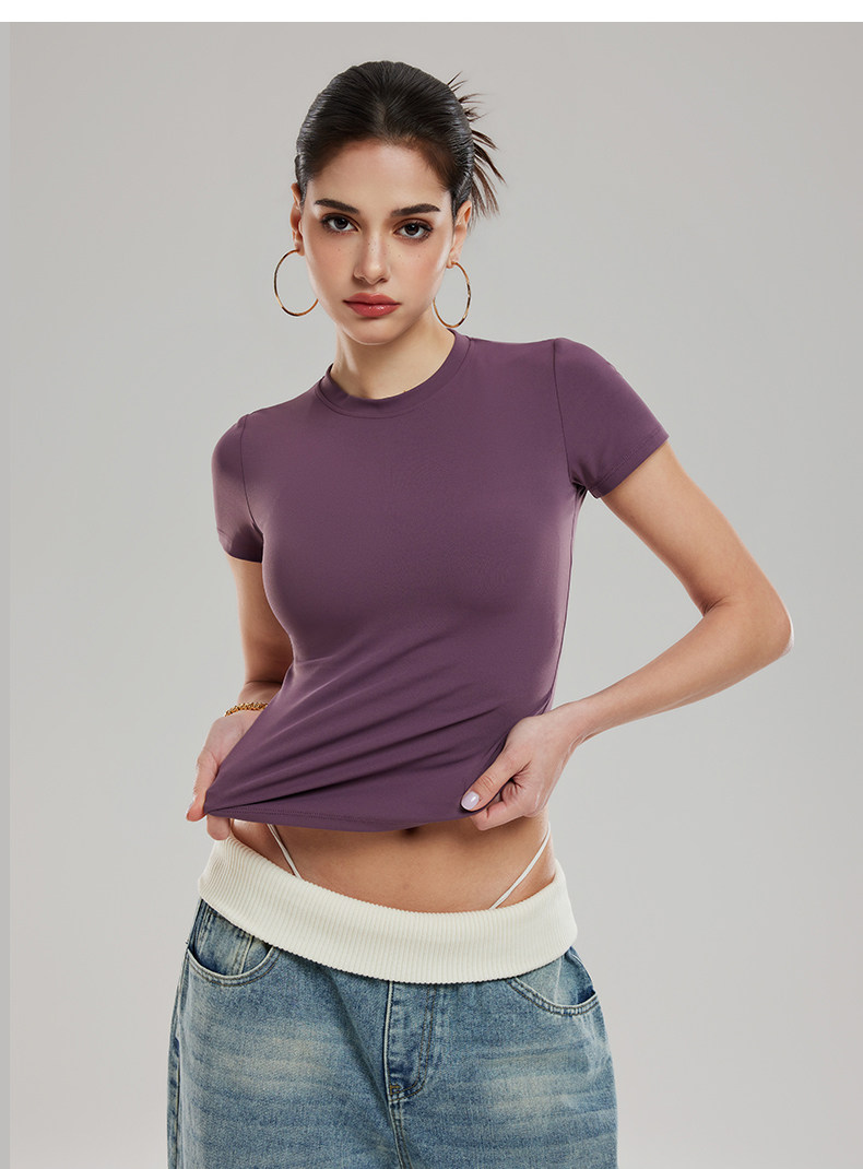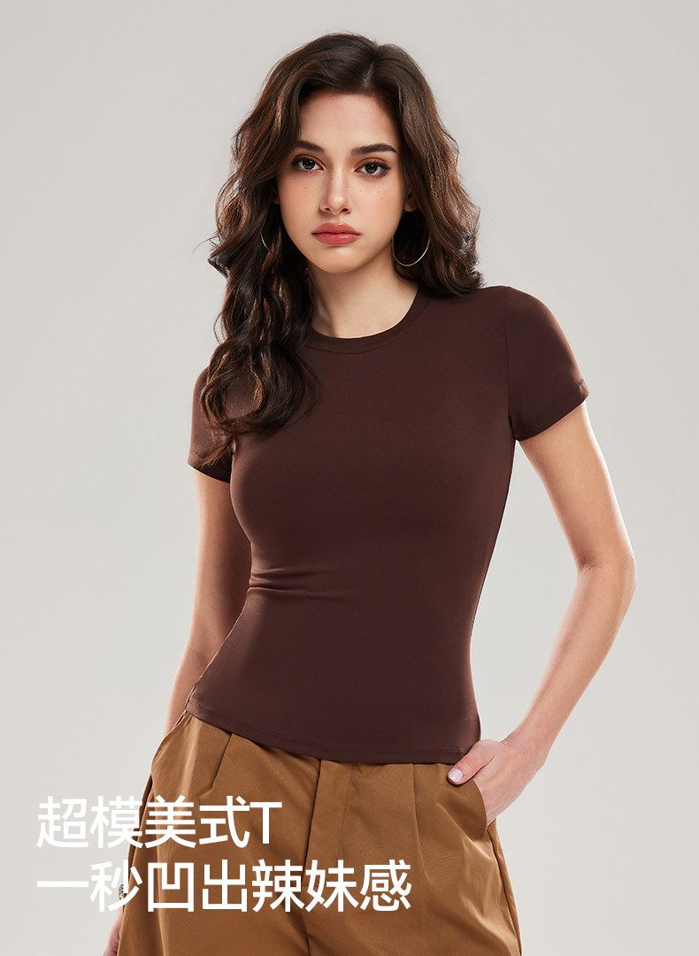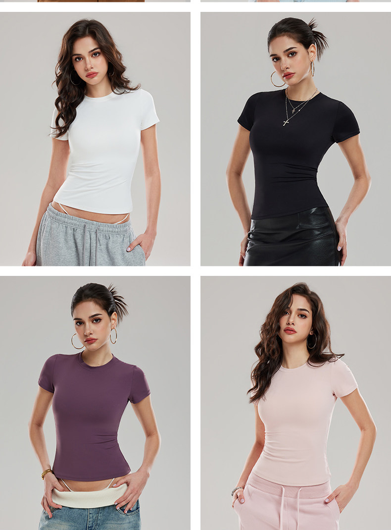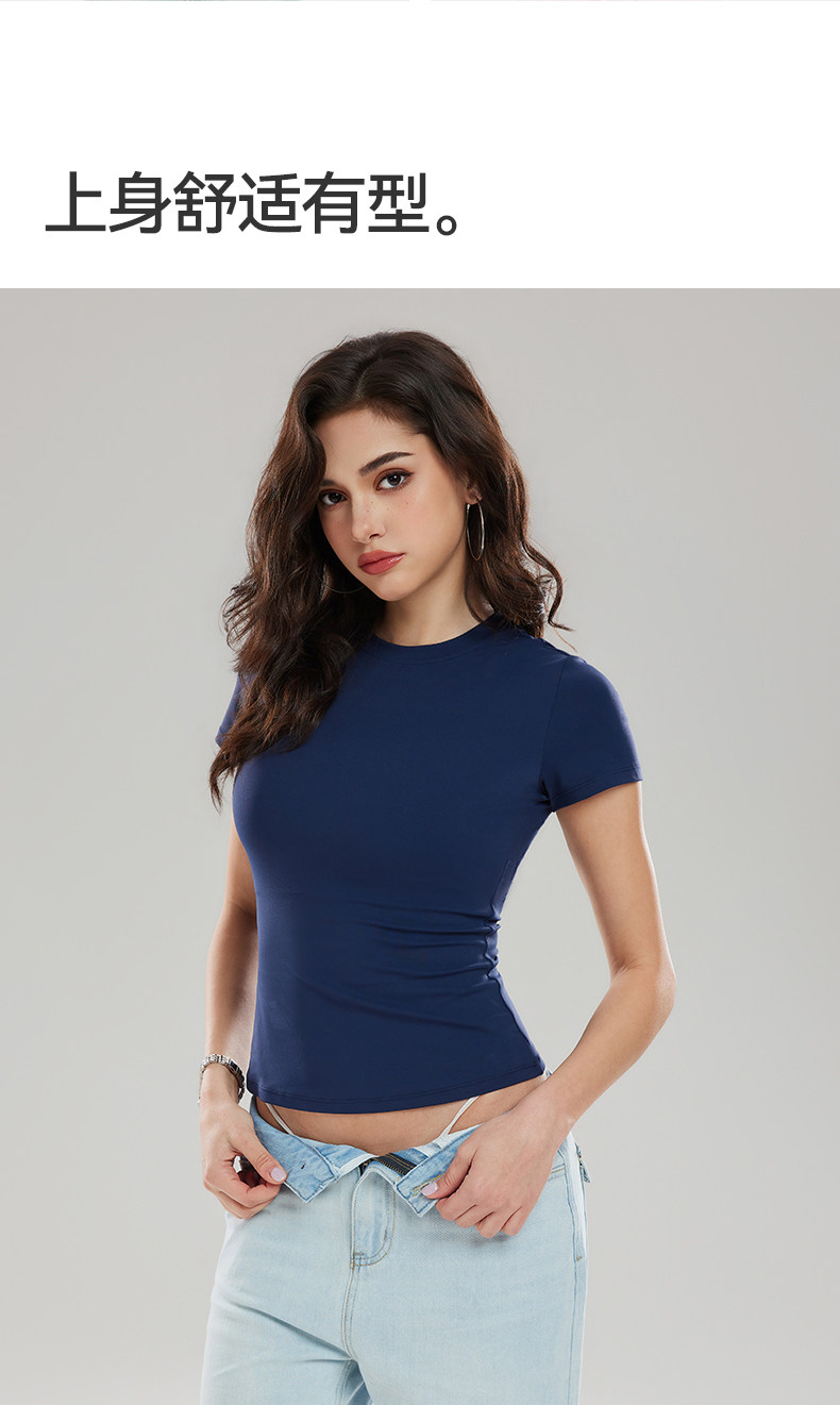 科里芙夏季紧身显瘦短袖女辣妹短款修身上衣健身休闲内搭T恤