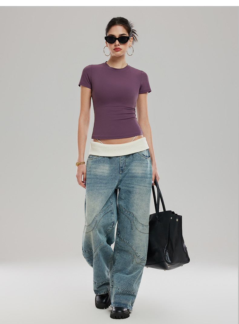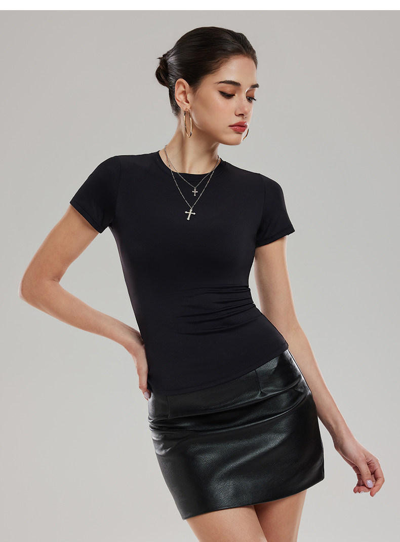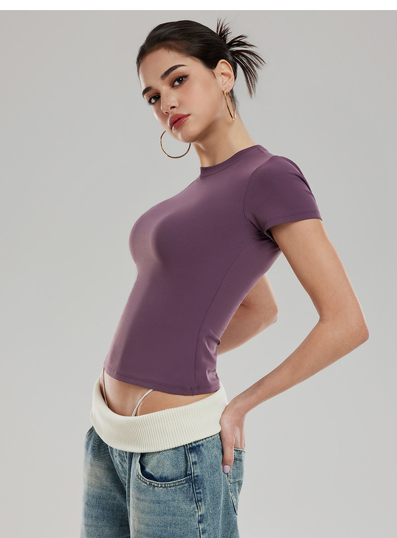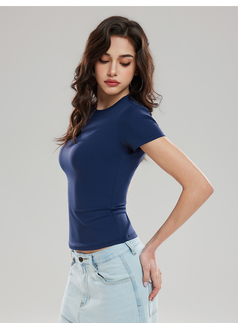 科里芙夏季紧身显瘦短袖女辣妹短款修身上衣健身休闲内搭T恤