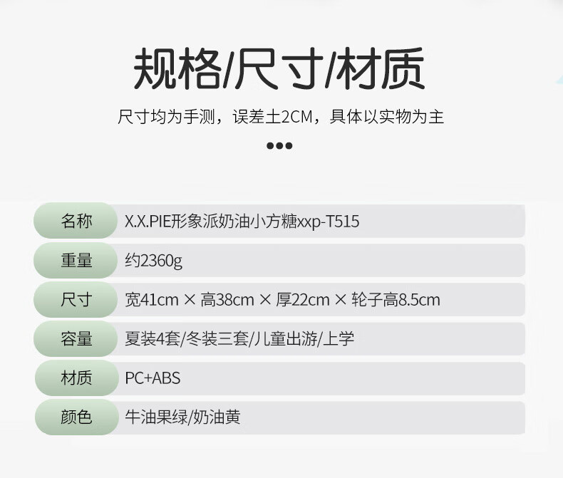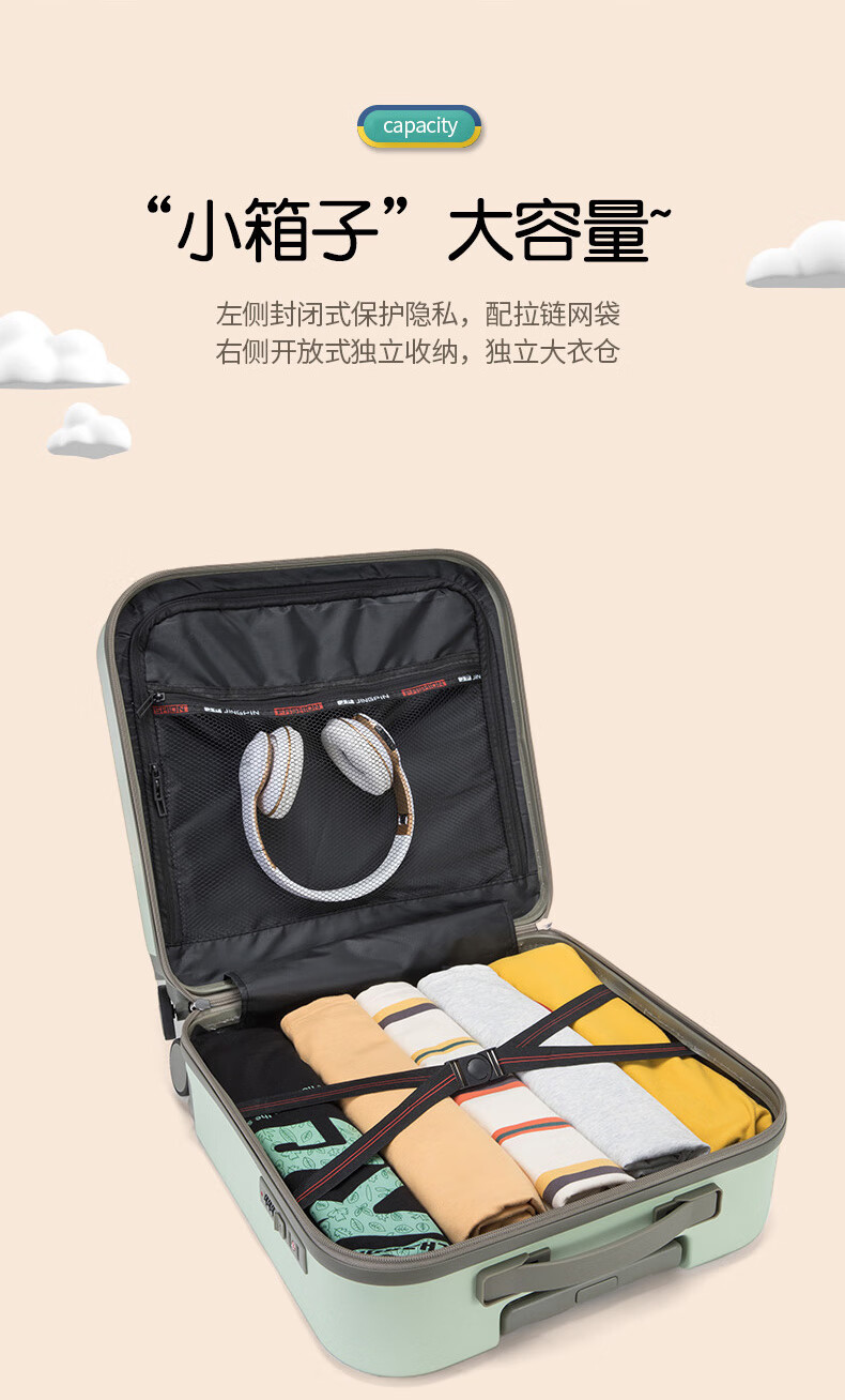 【多样屋专柜】形象派奶油小方糖行李箱 可登机便携小型儿童18寸旅行箱奶油黄 18英寸