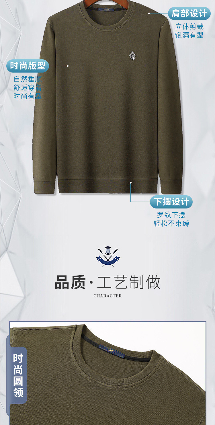 【高棉微弹力】罗蒙春季男装卫衣男士休闲简约学院风青少年套头T恤男