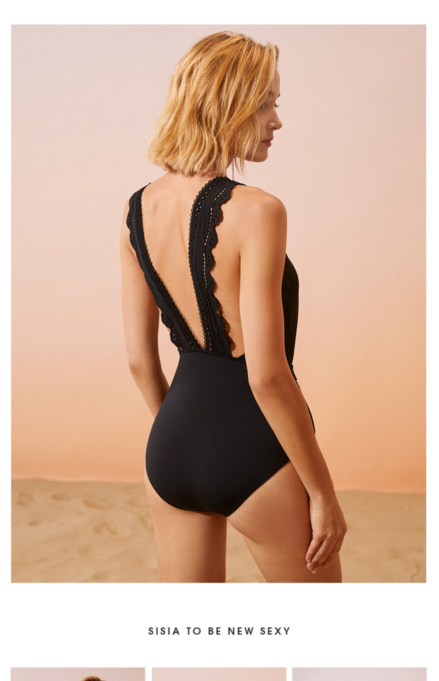 sisia2023新款泳衣女款性感v领显瘦遮肚连体泳衣泡温泉露背游泳装