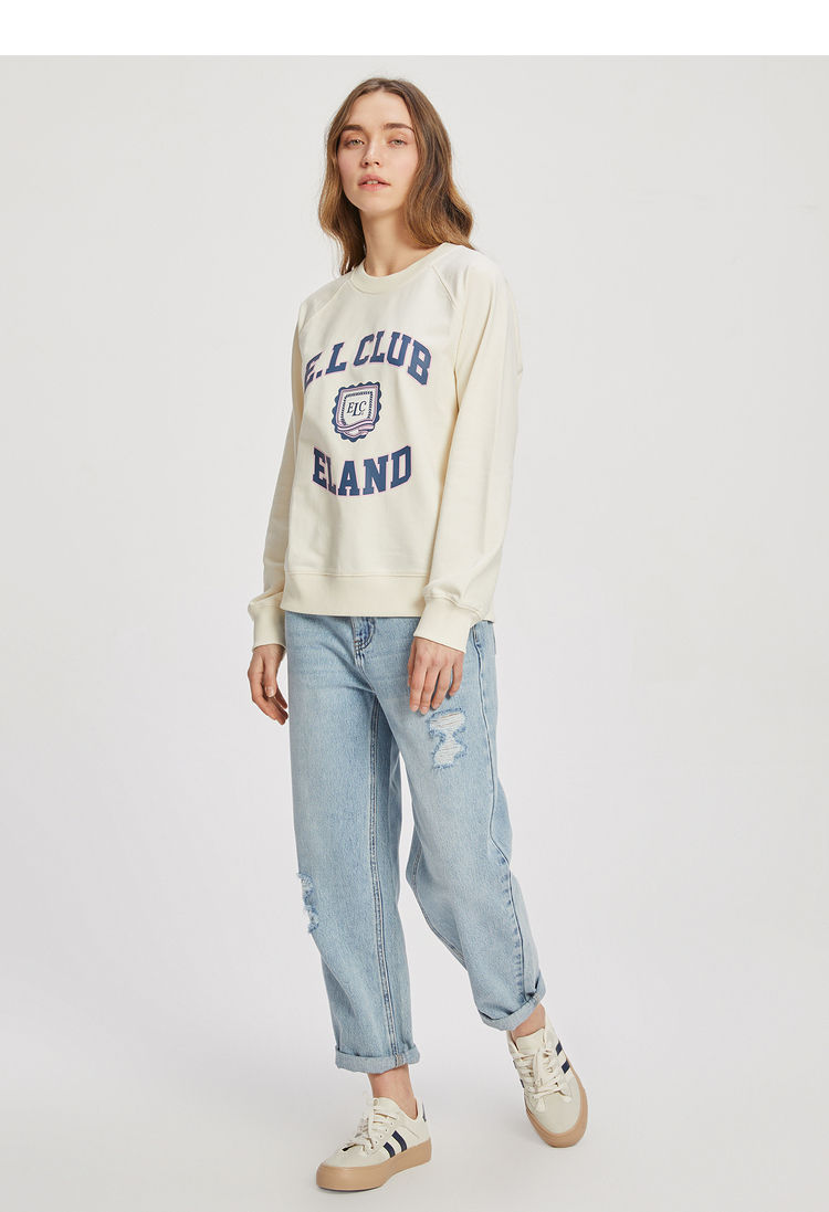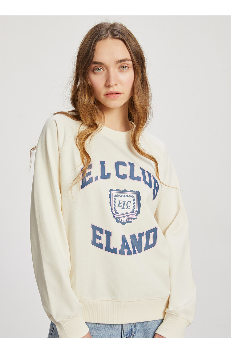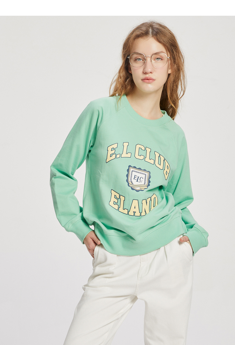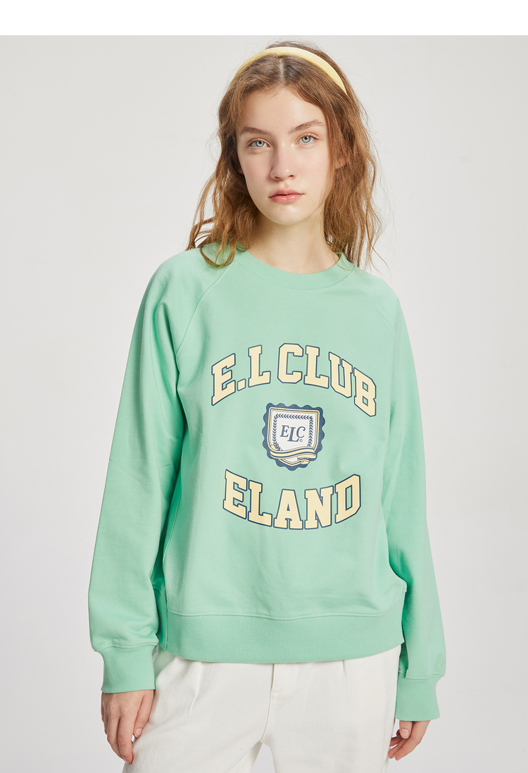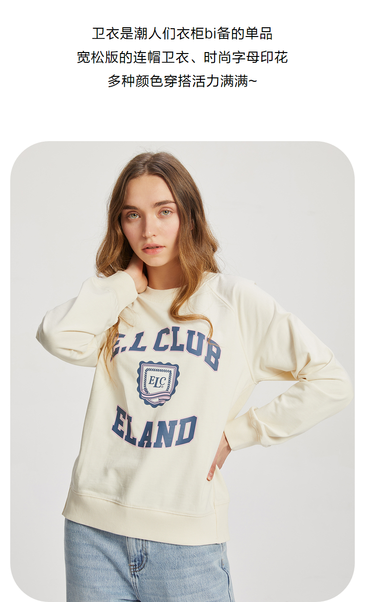 ELAND衣恋2022年春季新款清新时尚宽松休闲字母印花圆领卫衣女EEMTC23Q1N